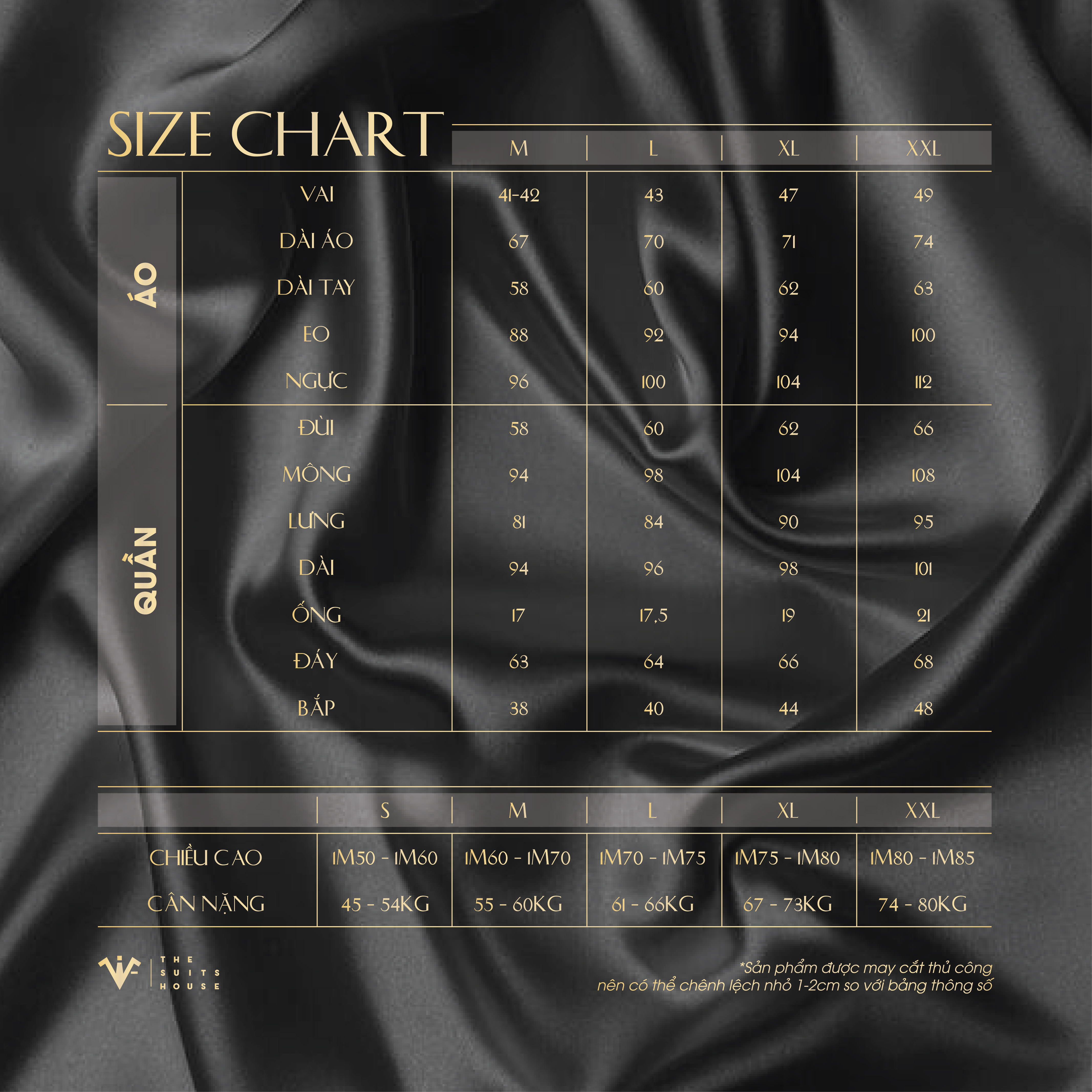 - Size: M L XL XXL • Một bộ suit bao gồm: