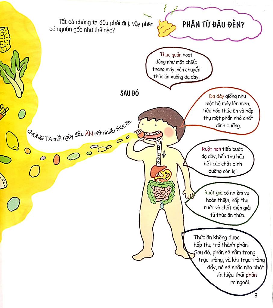 Không nhiều cuốn sách cho trẻ em ở Việt Nam nói thật kỹ và thật khoa học về việc đại tiện Thấu hiểu cách thức hoạt động của hệ thống đào thải, bé sẽ gặt