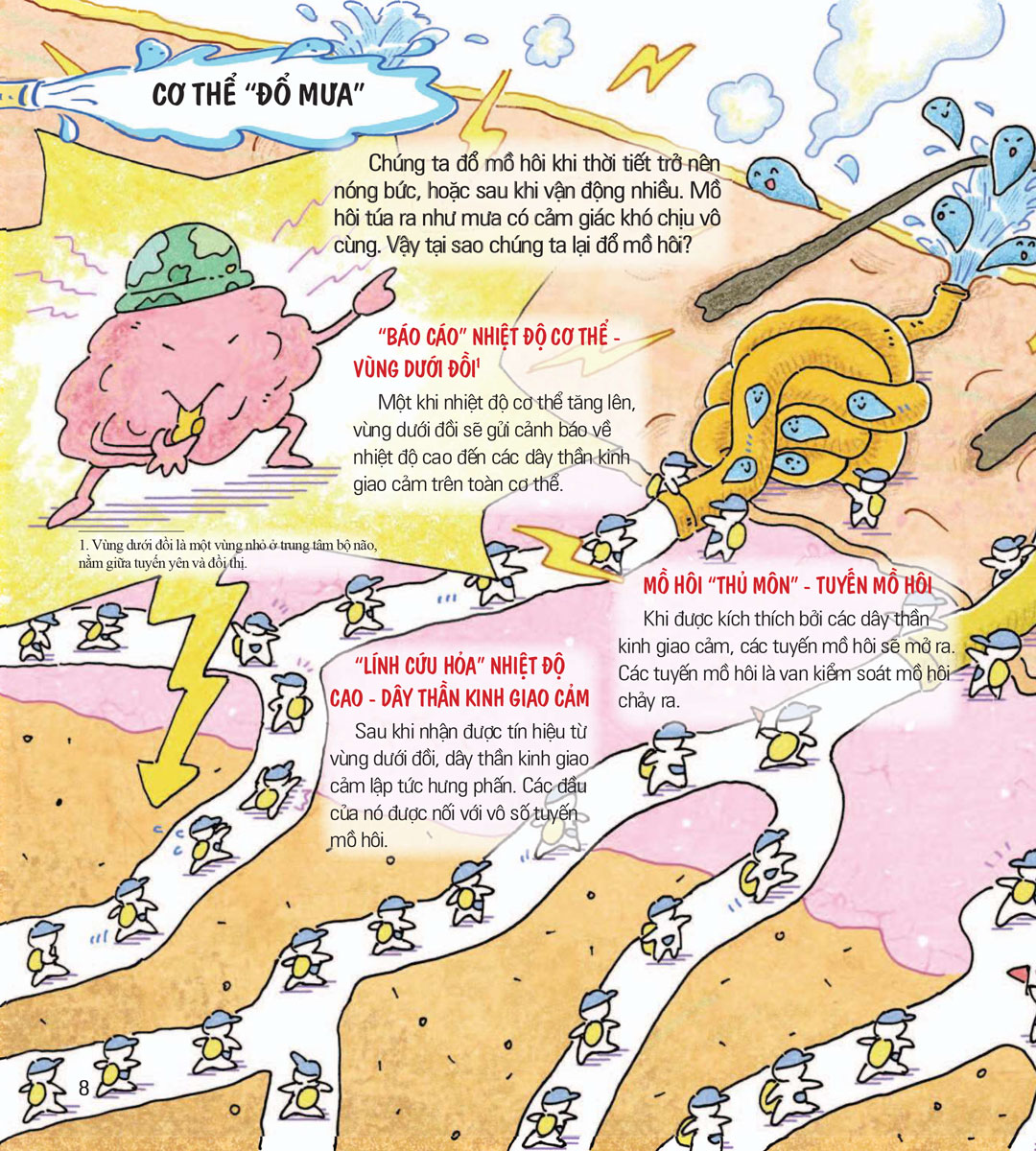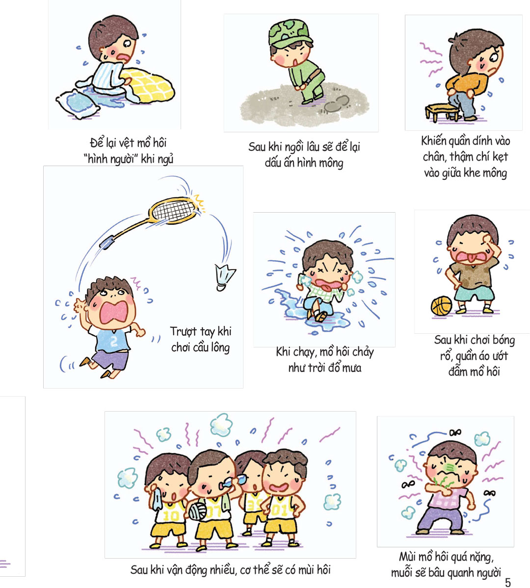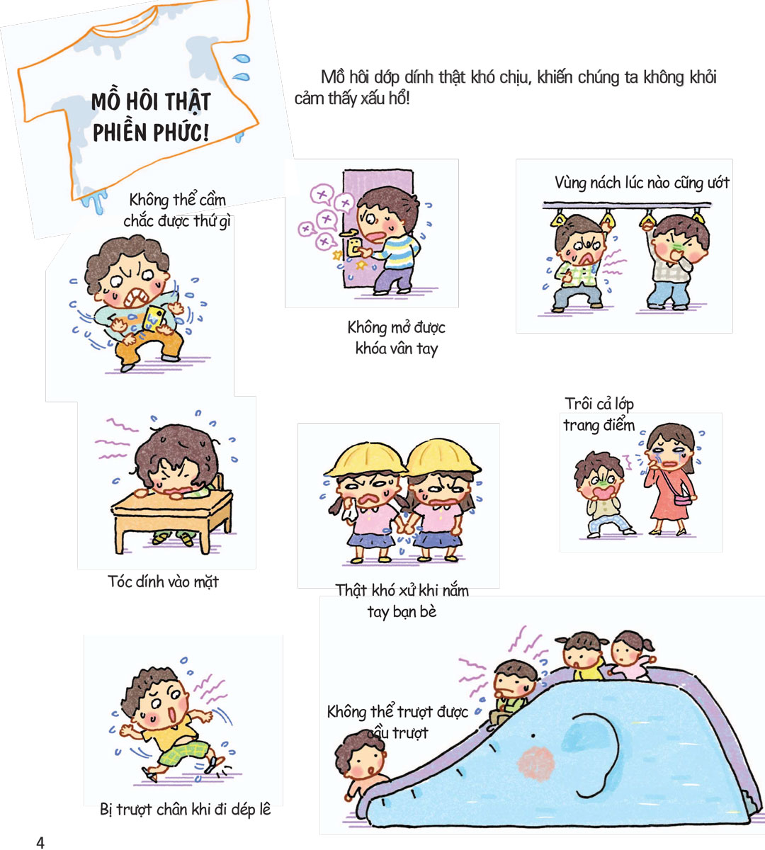 Đây là 36 trang chuyên biệt riêng về chuyện các bé cứ bị nhễ nhại sau khi chơi đùa. Cơ chế hoạt động của mồ hôi, tác dụng và những thói quen tố sẽ được tổng quát một cách lý thú và vui nhộn, khiến cho bé không còn cảm thấy xa lạ với "mưa" đổ trên cơ thể. Ngoài ra, những trò chơi củng cố và fun fact thú vị cũng sẽ được giới thiệu, như việc dự báo thời tiết qua mồ hôi, triển lãm mồ hôi trên thế giới