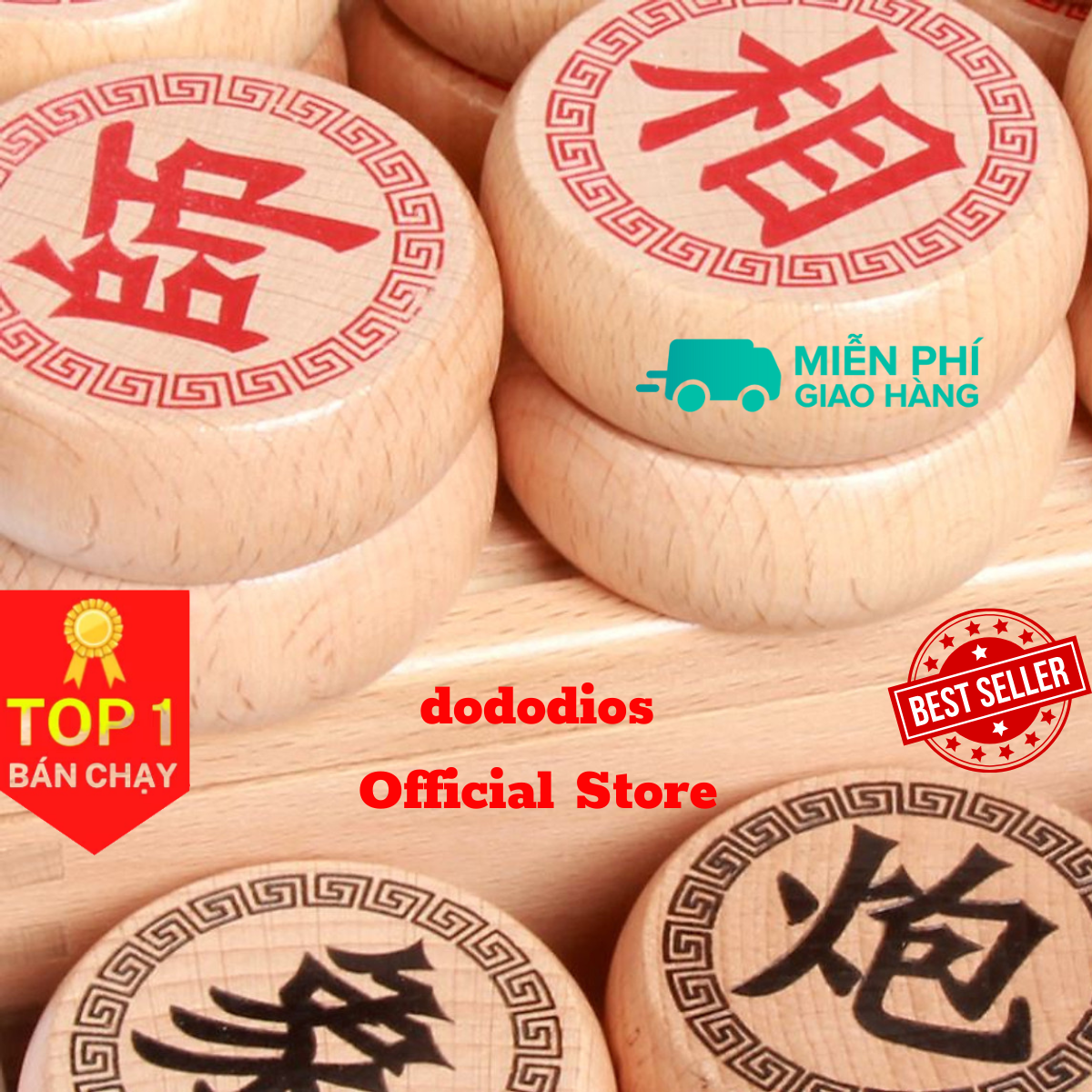 ✨Cờ tướng bằng gỗ tự nhiên - 40 x 35 cm - Quân đường kính 3,9cm - Chính hãng dododios