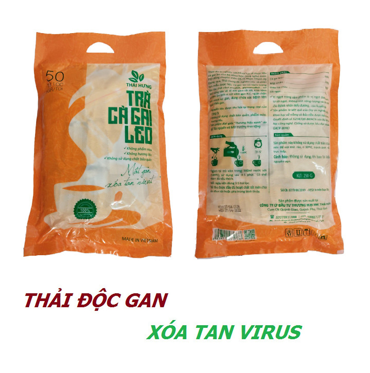 Trà Cà Gai Leo Thái Hưng 50 túi lọc x 5g - Mát gan thanh nhiệt, giải độc, giảm mụn nhọt (250g) Theo dự án nghiên cứu khoa học về dược liệu cà gai leo của Bộ Khoa học và Công nghệ được Hội đồng chuyên môn GS.TS Phạm Thanh Kỳ thông qua, Thái Hưng đã nghiên cứu và phân tích mẫu dược liệu Cà gai leo có hàm lượng lớn các chất như acaloit, có khả năng bảo vệ tế bào gan rất tốt, kìm hãm và làm âm tính vi rút viêm gan B, C; ngăn chặn quá trình xơ gan, dùng chữa các bệnh liên quan đến gan.