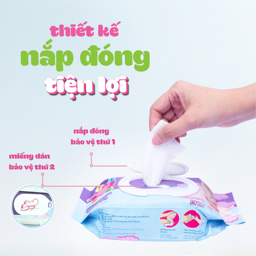 - Khăn ướt baby Enjoy 80 tờ hương Multi: Hương Garden Breeze là sự pha trộn giữa hoa nhài, hoa hồng và lá cây cam quýt