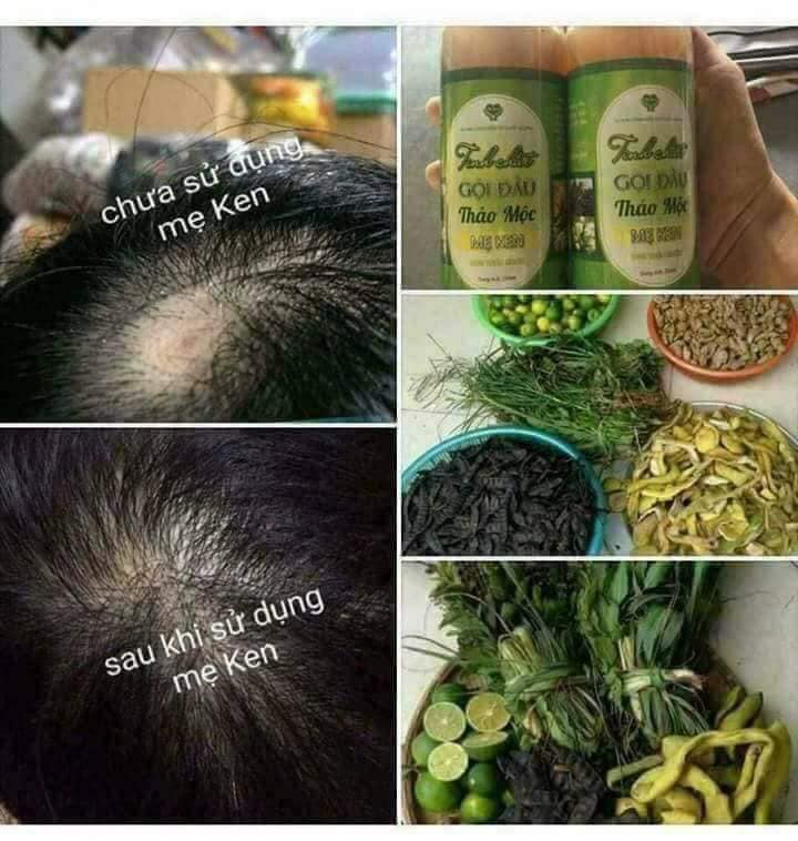 - Chiết xuất HOÀN TOÀN THIÊN NHIÊN an toàn và tốt tuyệt đối cho cả trẻ con… Sản phẩm hoàn toàn từ thiên nhiên giúp làm giảm gàu, giảm ngứa, ngăn ngừa rụng tóc, giúp tóc đen, suôn mượt, chống khô xơ và chẻ ngọn Dầu gội 2 trong 1 Gội hàng ngày mà không lo hoá chất, không cần dùng dầu xả Độ PH 5,5 Nam nữ già trẻ đều dùng chung hạn chế nhiều chai lọ Mùi thơm thiên nhiên dễ chịu không nồng nặc như hương liệu hóa chất Những ai bị rụng tóc, gàu, hay ngứa đầ MẸ KEN khuyên chỉ nên gội 1 mình Tinh chất thảo mộc thô Nó đã mềm mượt rồi. Hạn chế sử dụng dầu xả Tóc ai mà khô quá muốn ủ thêm, thì nên dùng dầu dừa, hoặc olive hoặc tinh bưởi MK trước để ủ rồi gội thôi là đẹp luôn. Nhiều nhất là 3 tháng, bạn sẽ có mái tóc không ngứa, không rụng, dày mau dài và bóng mượt Đặc biệt rất tốt cho trẻ con, bà bầu, sản phụ sau sinh THÀNH PHẦN : Nước, bồ kết, hương nhu, cây cứt lợn, hà thủ ô, bạch đàn, gừng, mần trầu, hoa nhài,… BẢO QUẢN: Nơi khô ráo, thoáng mát, tránh ẩm và có nhiệt độ dưới 30 độ C *HẠN DÙNG: 18 tháng kể từ ngày sản xuất