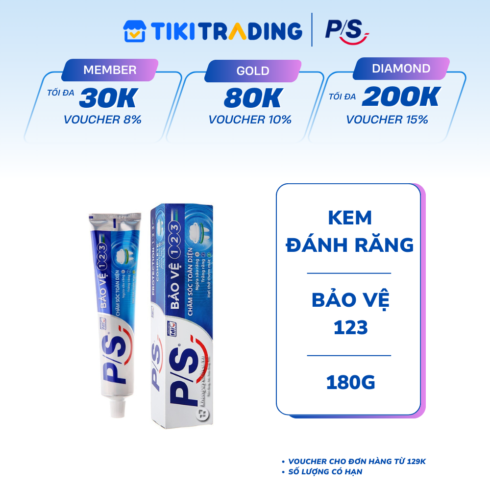 BAO BÌ THAY ĐỔI THEO TỪNG ĐỢT NHẬP HÀNG Kem Đánh Răng P/S Bảo vệ 123 - 200g Tính năng vượt trội: Ba tác dụng ưu việt: Ngừa sâu răng, trắng răng và hơi thở