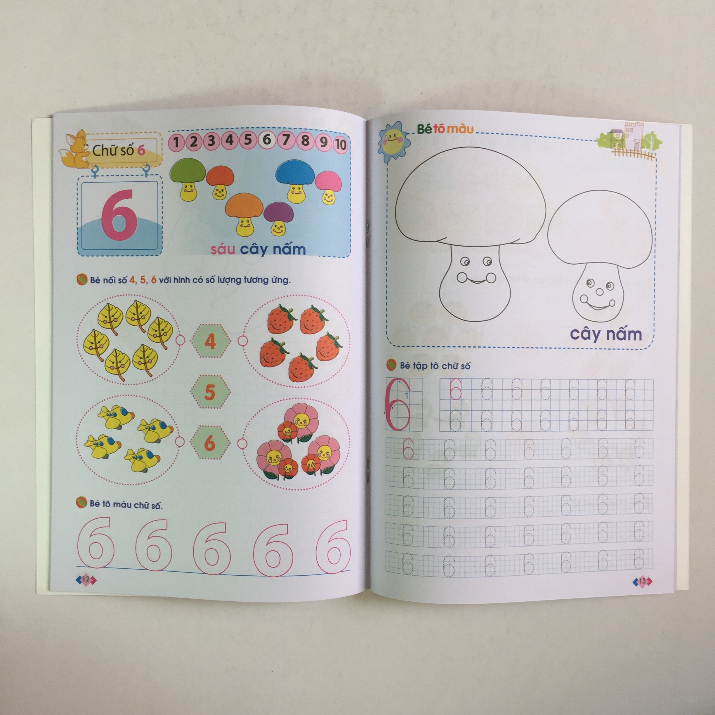 Túi bao gồm 9 cuốn, mỗi cuốn mang một chủ đề khác nhau hướng dẫn các em làm quen với các khái niệm toán học đơn giản và các phép tính trong phạm vi 10; đồng thời rèn luyện khả năng quan sát, phát triển tư duy thông qua các trò chơi thú vị. Các mẫu chữ trong bộ sách đều là mẫu chữ mới do Bộ Giáo dục và Đào tạo quy định, hiện đang được áp dụng trong các trường tiểu học trên toàn quốở tập tô cho bé
