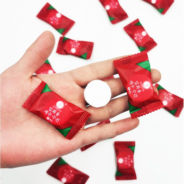 Khăn giấy nén Hàn Quốc gói 20 viên khăn nén bỏ túi du lịch tiện lợi ,khăn ướt dạng viên nén