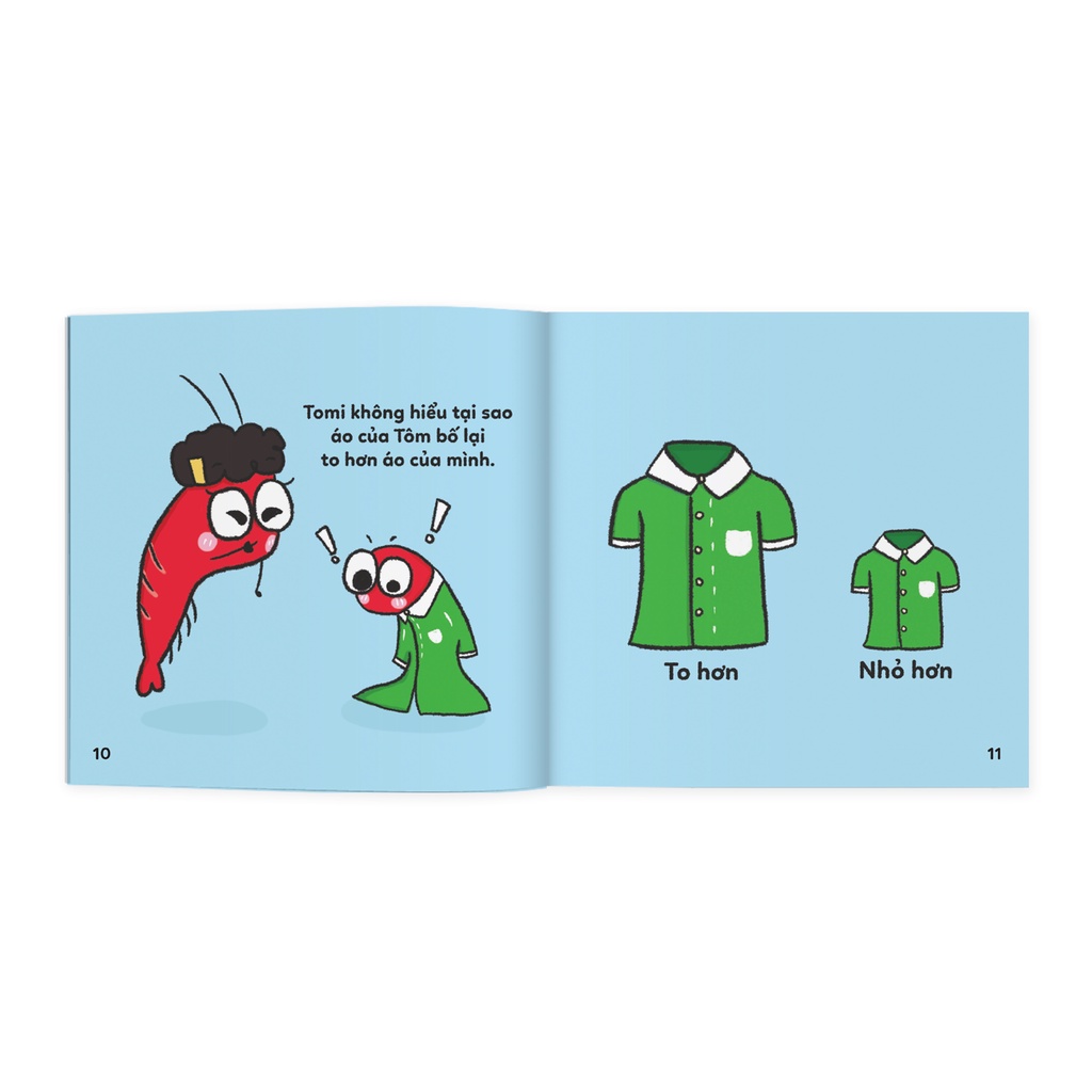 - Tomi có tính tò mò, cậu thấy đồ dùng nào của bố và anh cũng to còn đồ dùng nào của mình cũng bé. Thông qua mẩu chuyện đáng yêu của Tomi trong "To nhỏ", bé học được phép so sánh TO – NHỎ và tự mình khám phá, lí giải các sự vật xung quanh.