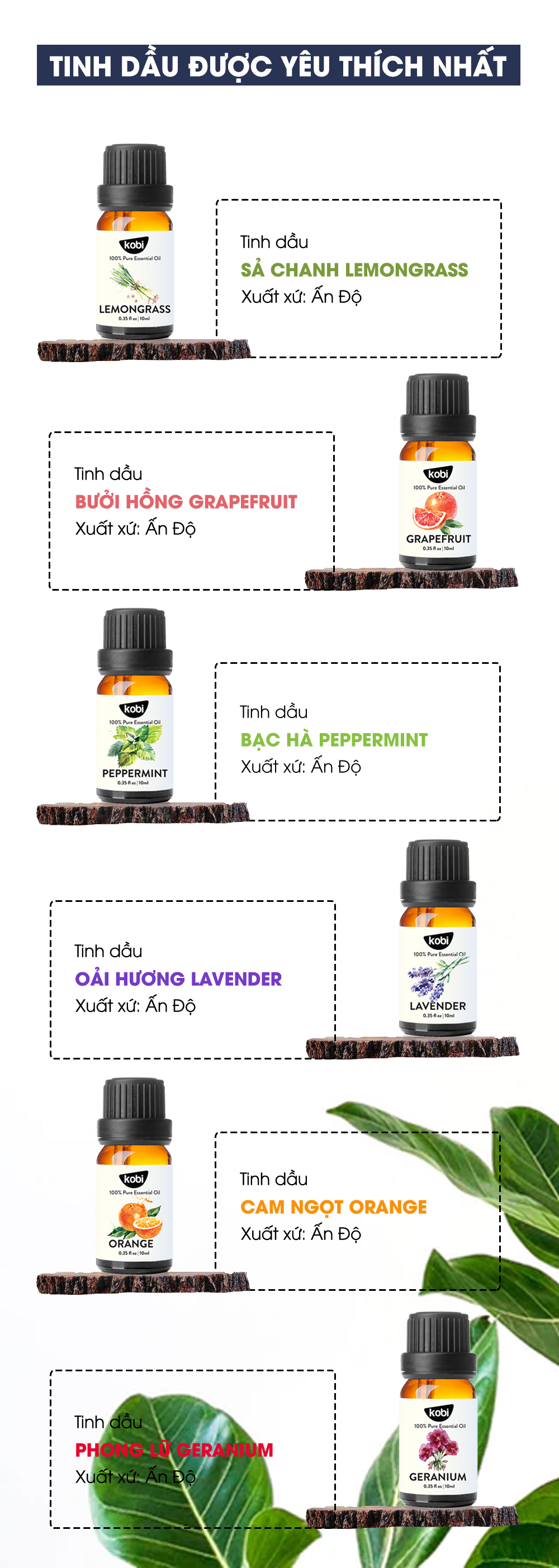 TINH DẦU XÔNG PHÒNG KHUẨN KHÁNG KOBI GIÚP KHỬ TRÙNG DIỆT VIRUS Combo 3 Tinh Dầu Xông Phòng Kháng Khuẩn Sả Chanh, Cam Ngọt, Oải Hương Kobi Giúp Khử Trùng, Thanh Lọc Không Khí,