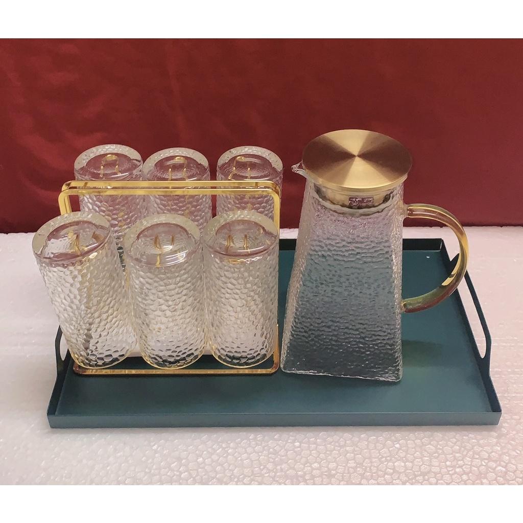 Bộ khay bình nước 6 cốc thuỷ tinh cao cấp