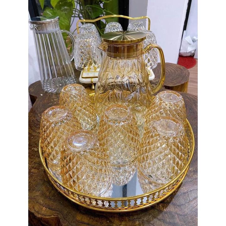 Bộ sản phẩm gồm: 1 bình nước + 6 cốc + Khay + giá úp cốc