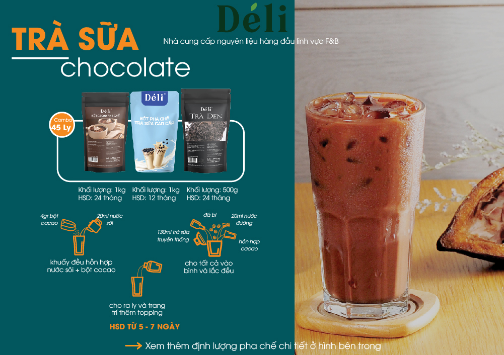 ✨Combo Bột Sữa Cao Cấp 1kg+ Hồng trà Déli 400gr+ Bột cacao Déli 1kg, nguyên liệu pha chế trà sữa Chocolate