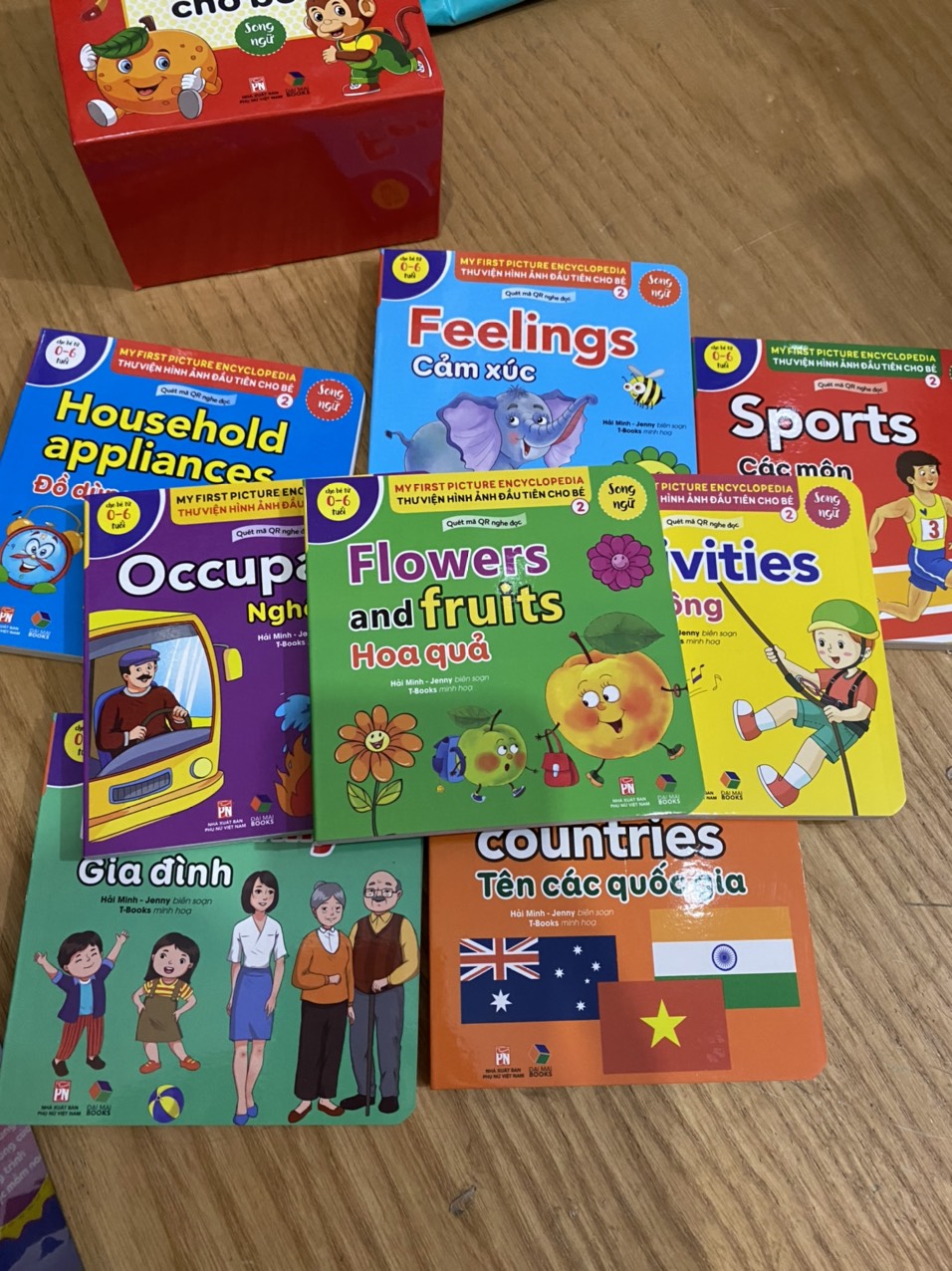 Combo hộp 8 cuốn ,Thư viện hình ảnh đầu tiên cho bé 2 ( song ngữ ) + có mã QR để nghe