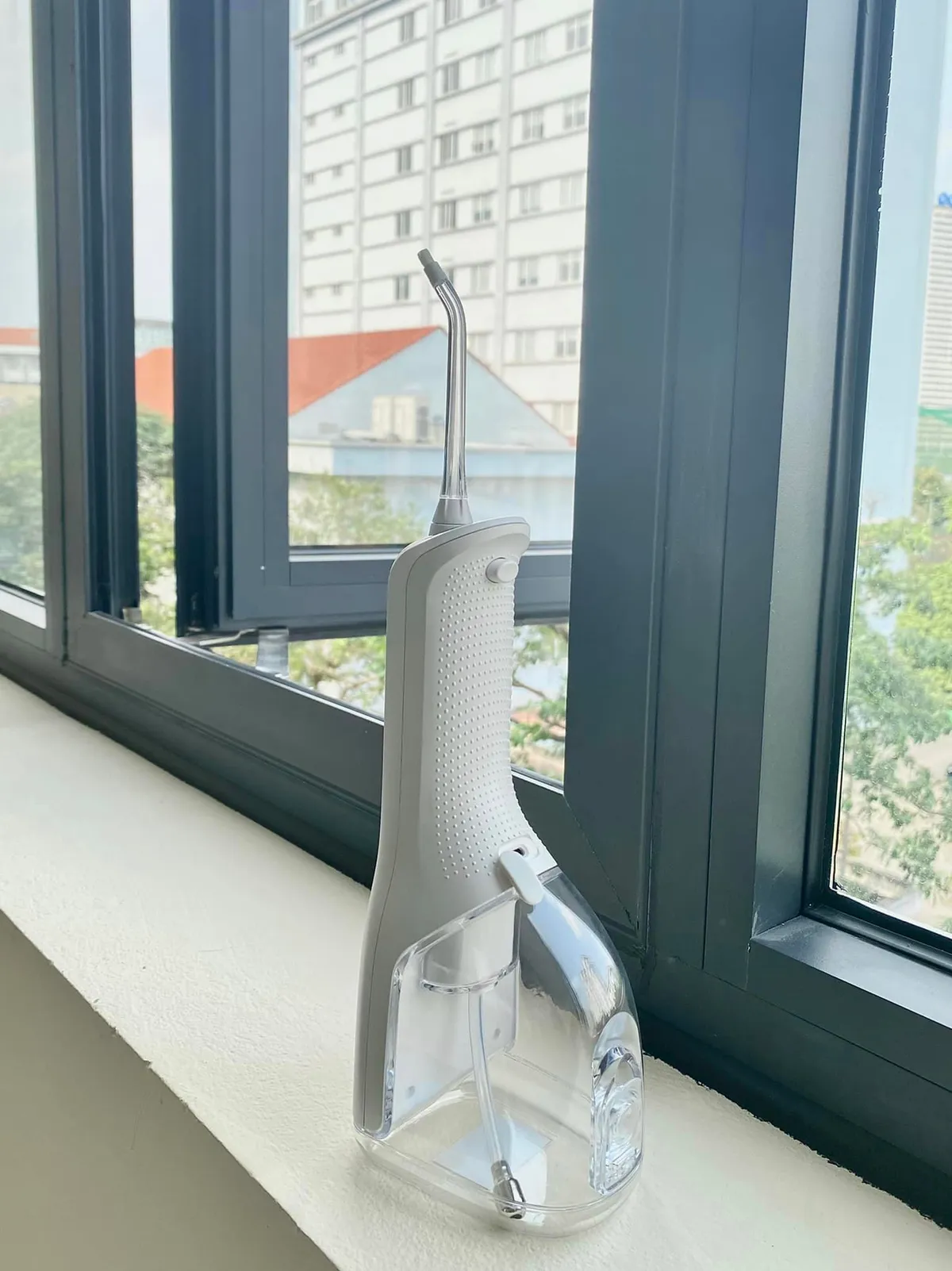 - Tích trữ nhiều nước hơn. Bình chứa nước dung tích lớn để dùng chỉ nha khoa liên tục, một lần đổ nước vào là có thể rửa sạch răng, không cần đổ lại nước nhiều lần *CÁCH SỬ DỤNG: