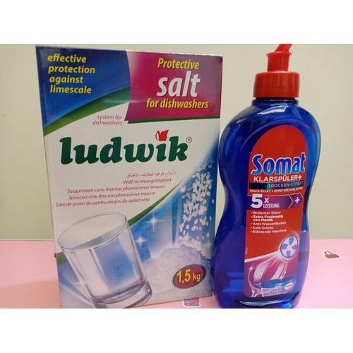 Combo Muối Rửa Chén Somat 1.2kg ( hoặc muối ludwik 1.5 kg)+ Nước Làm Bóng 500ml ( Hàng Đức )
