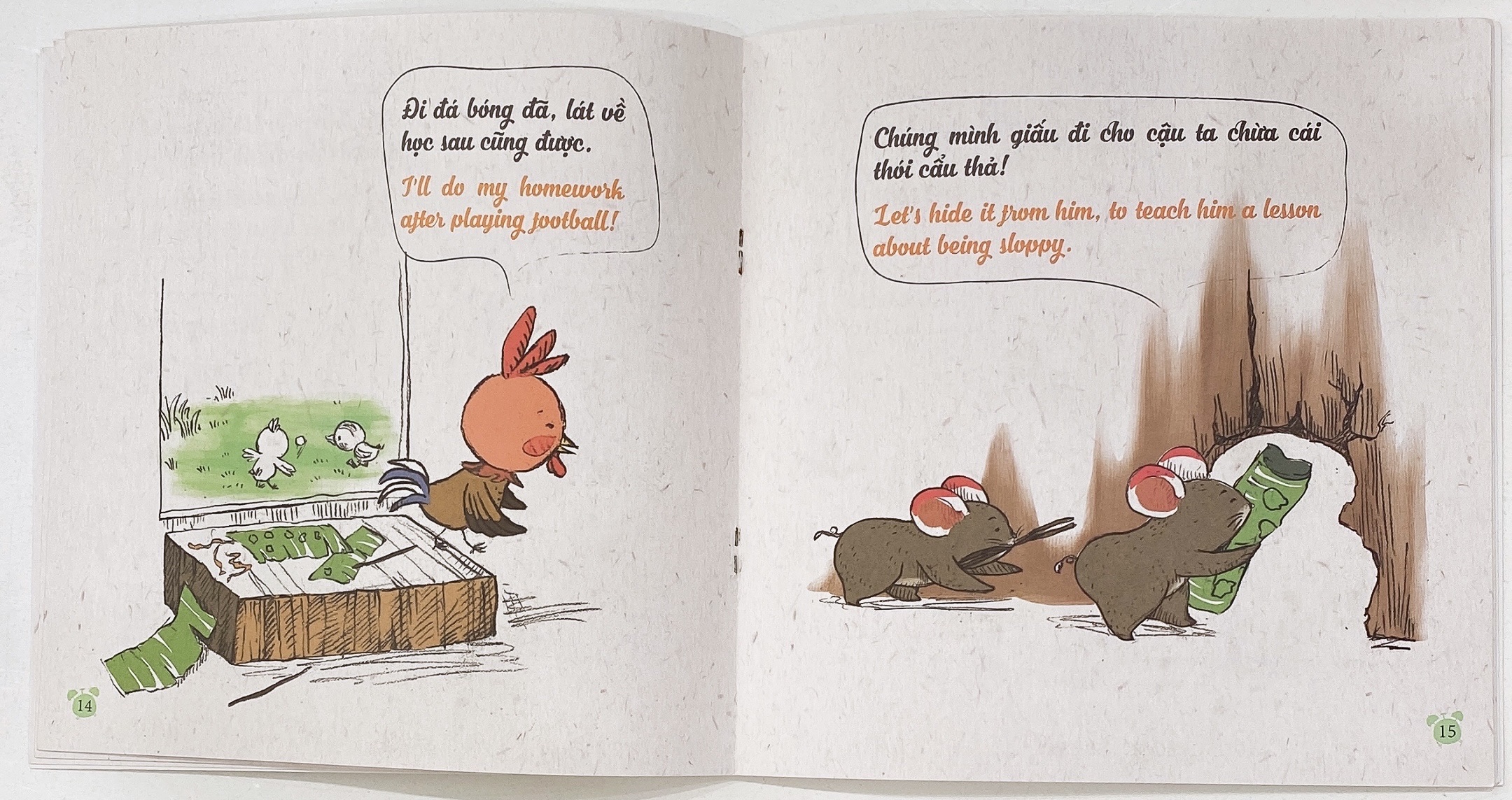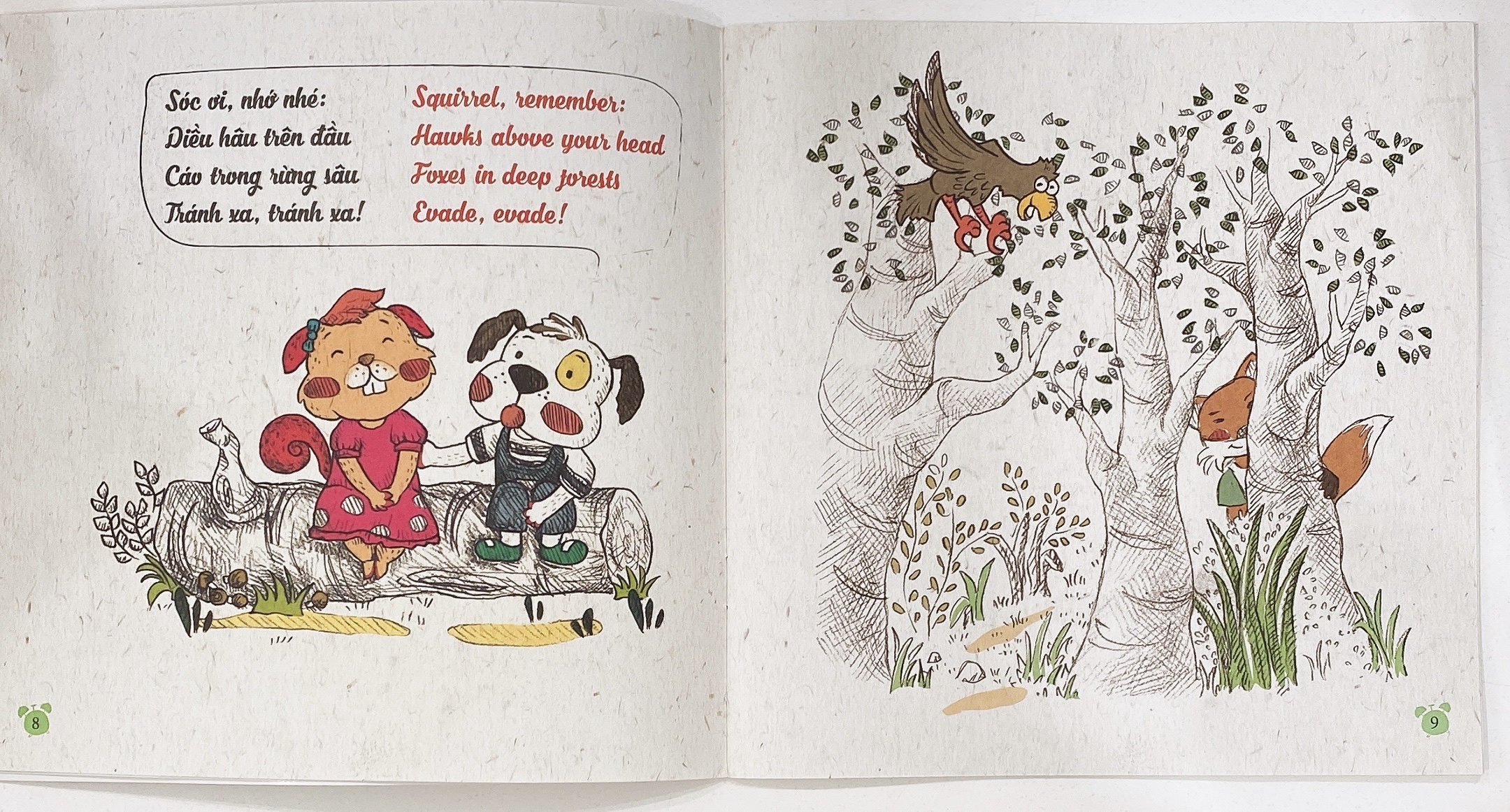 Ngoài ra, bộ sách được biên soạn song ngữ Anh – Việt, giúp các bé làm quen với các từ, các câu tiếng Anh đơn giản, hàng ngày, giúp khơi gợi niềm hứng thú học ngoại ngữ cho các bé.