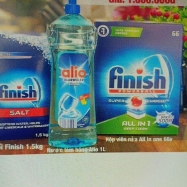 Combo 3sản phẩm Hộp viên rửa chén bát Finish 66 viên + Hộp muối làm mềm nước Finish 1,2kg + chai nước làm bóng Alio