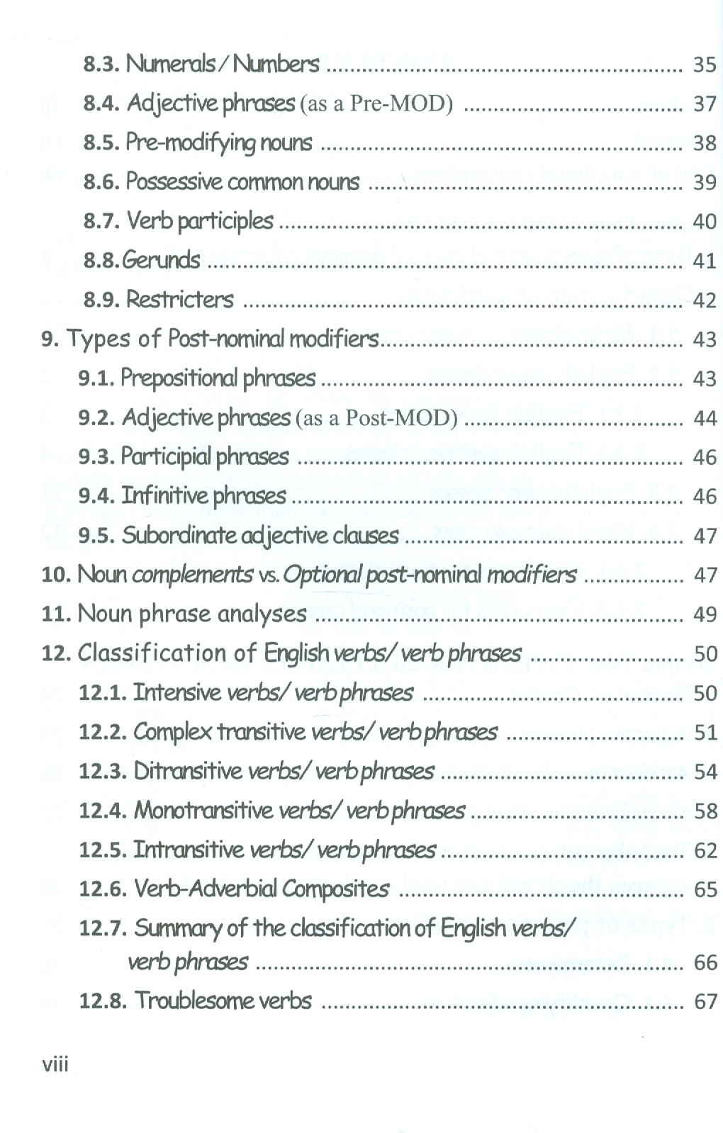 Trong phần nội dung của sách còn có đưa vào tên gọi tương đương trong tiếng Việt của các thuật từ, thuật ngữ quan trọng nhất trong Cú pháp học tiếng Anh. Các thuật từ và thuật ngữ này, cũng với (i) ký hiệu viết tắt và (ii) tên gọi tiếng Việt của chúng, được trình bày một cách có hệ thống trong Bản liệt kệ các quy ước về ký hiệu (List of notational conventions) ở ngay đầu quyển sách nhằm hỗ trợ người học tiện tra cứu khi cần.