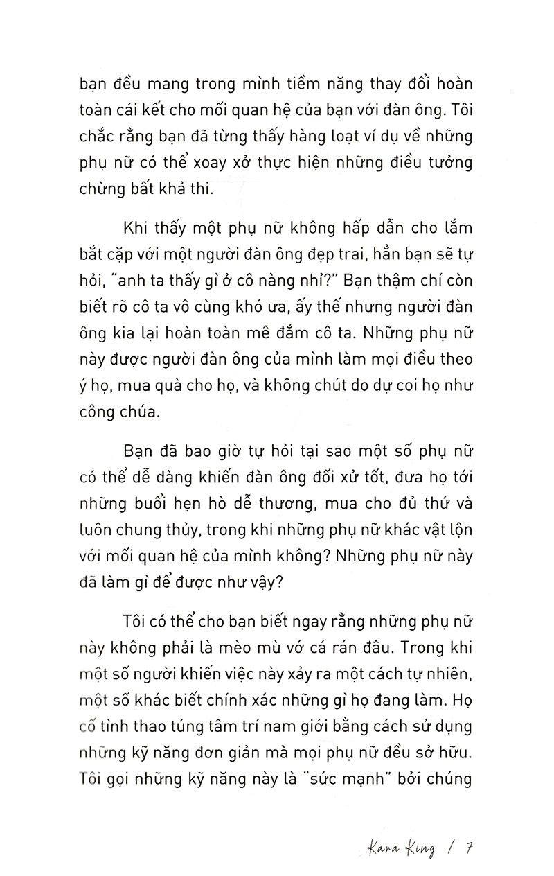 Đặc Quyền Của Gái Hư “ĐẶC QUYỀN CỦA GÁI HƯ” – TUYỆT CHIÊU GIÚP PHÁI ĐẸP NẮM MỌI THỨ TRONG TAY, XOAY MỌI THỨ QUANH MÌNH. Cuốn sách giúp bạn nhận ra đã đến lúc bạn không còn phải lựa chọn giữa tình yêu, sự tôn trọng hay một chiếc nhẫn. Bởi bạn xứng đáng có được tất cả những điều đó! Bằng những chia sẻ thẳng thắn và lối suy nghĩ cởi mở về những vấn đề nhạy cảm trong đời sống của phái đẹp, tác giả Kira King sẽ giúp bạn phá vỡ mọi rào cản mà trước giờ bạn vẫn hằng e sợ. Quan hệ tình dục trước hôn nhân liệu có phải là xấu? Làm tình với người mình yêu có bị coi là dễ dãi? Là phụ nữ thì không nên chủ động trong chuyện “giường chiếu”? Với “ĐẶC QUYỀN CỦA GÁI HƯ”, bạn sẽ tìm được đáp án của riêng bạn cho tất cả những câu hỏi còn bỏ ngỏ đó. Nhưng dù câu trả lời bạn chọn có là gì, thì khi khám phá hết 12 sức mạnh tiềm ẩn của phái đẹp (tương đương với 12 chương sách), bạn cũng sẽ hiểu ra rằng: Bạn có thể lấy mọi thứ bạn muốn từ đàn ông mà không còn cần phải lo sợ việc sẽ bị tổn thương, bị lừa, hay bị đá. Bởi khi đã hiểu rõ nội lực và giá trị của chính bản thân mình, bạn luôn có thể thay đổi và có được mọi thứ bạn khao khát. Đôi khi bạn cũng cần tham lam, và thật nhẫn tâm để nắm mọi thứ trong tay, xoay mọi thứ quanh mình. Thế giới này cần những người phụ nữ như vậy để bớt đi khổ đau, vơi đi nước mắt. Và hãy đọc cuốn sách này với một trái tim vững vàng, một cái đầu thật rộng mở. Sau cùng, bạn sẽ có được lời cam kết, chiếc nhẫn và cả người đàn ông trong mơ của bạn.