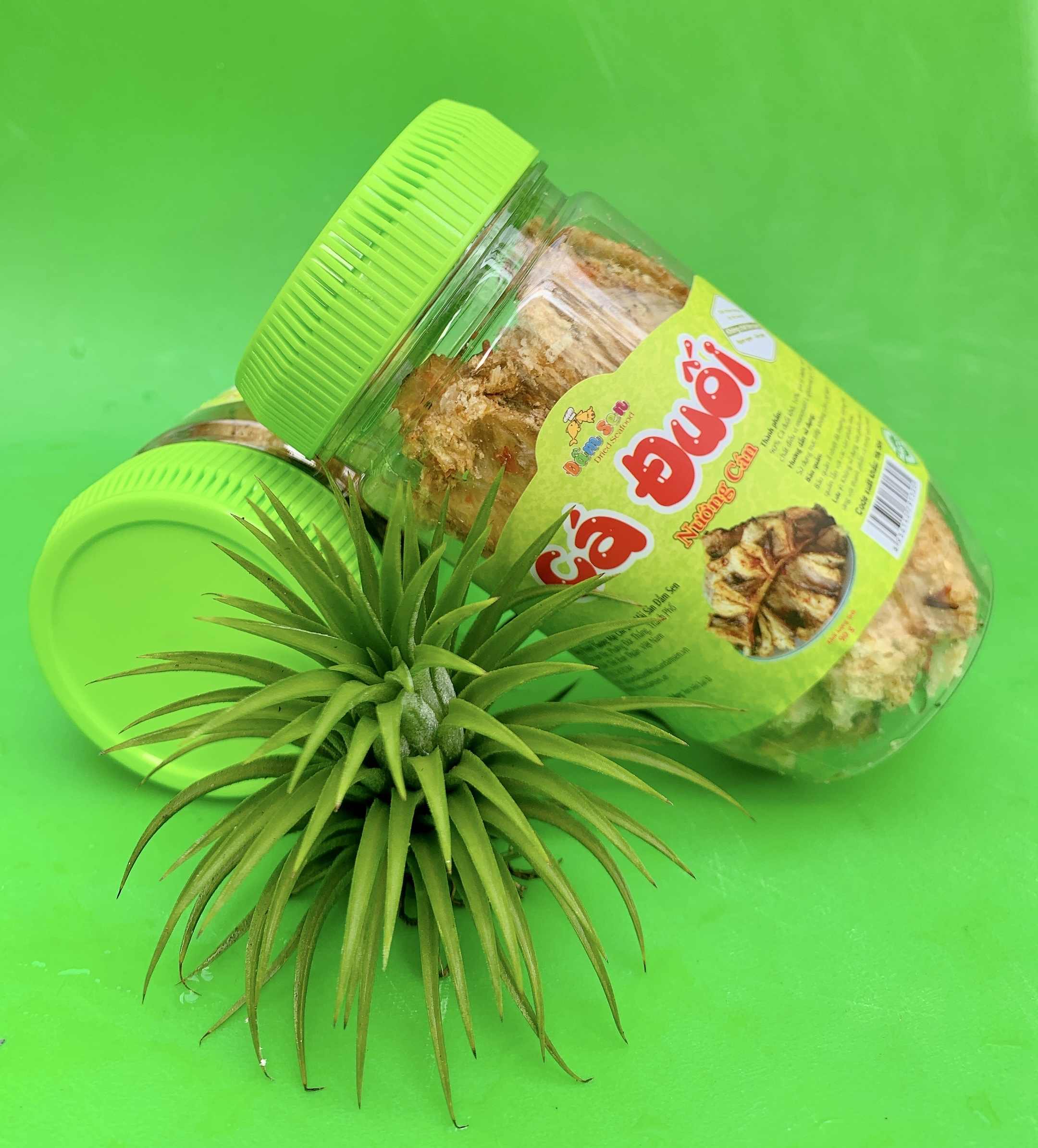 Thành phần: 90% cá mai khô, 2% dừa và dứa, 8% gia vị (đường, muối, chất điều vị mononatri L-glutamat 621, tiêu, ớt, hành lá, dầu ăn) Hạn sử dụng: 9 tháng kể từ ngày