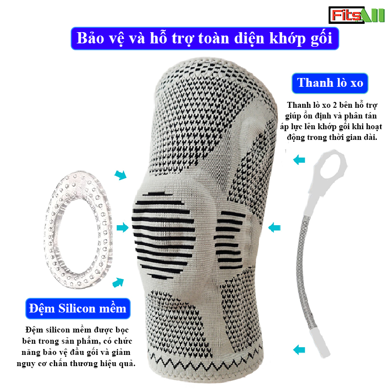 - Sản phẩm được thiết kế bởi kỹ thuật dệt kim 3d đặt biệt với miếng đệm silicon. Cung cấp khả năng nén và hỗ trợ mô mềm ổn định. Bảo vệ ngăn ngừa đầu gối bị va đập và tác động khi luyện tập thể thao.