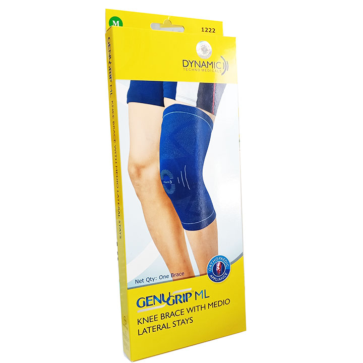 Đai Đầu Gối Cao Cấp Sau Phẫu Thuật Giãn Dây Chằn | Đai  Đầu Gối Cao Cấp Chơi Thể Thao Dùng Được Cho Cả Hai Chân GENU GRIP  WITH MEDIO LATERAL STAYS   Đặc điểm nổi bật:   -Hàng nhập khẩu cao cấp chính hãng theo tiêu chuẩn Châu Âu. -Dệt kim 3D thoáng mềm, tạo cảm giác thoải mái cho người dùng. -Hỗ trợ điều trị viêm khớp, mãn tính thoái hóa khớp, tràn dịch khớp. -Hỗ trợ trong chơi thể thao           Đặc điểm của sản phẩm   -Dệt kim 3D,bốn cách vật liệu căng thẳng ngăn ngừa co thắt, cung cấp nén đầy đủ và sẽ không hạn chế tuần hoàn máu. -Thoáng khí đan cung cấp lưu thông không khí và làm giảm sự tích tụ mồ hôi. -Miếng đệm áp lự silicon hình thành tích hợp ở vùng vỏ bọc cung cấp hành động xoa bóp nhẹ nhàng và nén cho cách mô mềm và dây chằng -Thiết kế phù hợp và thiết kế giải phẫu đường cong ngăn ngừa trượt và bị bó -Trong quá trình di chuyển, sản phẩm cải thiện lưu thông máu do đó làm giảm nhanh chóng sưng và bầm tím.    Chỉ định sử dụng sản phẩm   -Hỗ trợ điều trị viêm khớp, mãn tính thoái hóa khớp, căng cơ đầu gối, tràn dịch khớp, bong gân, căng thẳng, trật khớp bánh chè -Hỗ trợ đầu gối sau giải phẫu giúp ổn định khu vực xương bánh chè ở đầu gối.                Sản xuất và nhập khẩu: Sản phẩm đạt tiêu chuẩn CHÂU ÂU do hãng DYNAMIC của Ấn Độ sản xuất xuất khẩu trên 35 nước trên thế giới bao gồm Anh, Mỹ, EU, châu Á...   Cách lấy size: đo chu vi đầu gối (cm)   SIZE Đo chu vi đầu gối (cm) S 32-34cm M 34-37cm L 37-40cm XL 41-43cm XXL 44-46cm