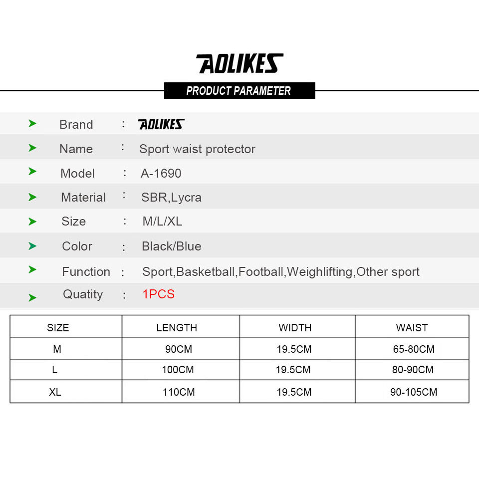 Đai hỗ trợ thắt lưng cột sống tập gym AOLIKES A-1690 Sport waist protector Đai lưng tập thể hình cao cấp AOLIKES A-1690 định hình cơ bụng Sport waist protector là phụ kiện thể thao chính hãng của Aolikes, đảm bảo về tiêu chuẩn và chất lượng cho người sử dụng một phụ kiện vô cùng quen thuộc đối với người chơi thể thao được dùng để định hình cơ bụng khi tập luyện gíp bảo vệ cột sống và tránh khỏi những chấn thương Thông số chi tiết: