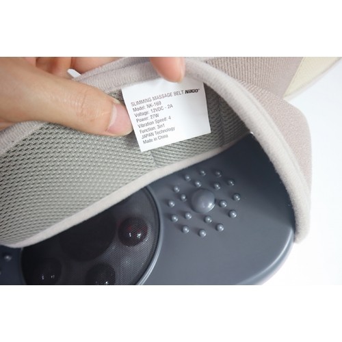 Khi sử dụng máy cảm thấy khó chịu nên dừng máy lại, nghỉ ngươi và uống 1 cốc nước sau khi tập với máy. Thông số kỹ thuật Đai massage bụng thế hệ mới Nikio NK-169: Model: NK-169 3in1: Rung lắc, xoay 360 độ, nhiệt đèn hồng ngoại Thương hiệu: Nikio Công nghệ sản xuất: Nhật Bản Nguồn điện: 100-240VAC/50Hz Điện áp đầu vào: 12V-2A Công xuất: 24W Chế độ massage: 2 (Auto và tùy chỉnh) Chế độ Auto: 4 chê độ massage lập trình tự động khác nhau Tốc độ massage: 4 mức mạnh nhẹ tùy chỉnh Con lăn xoay 360 độ tùy chỉnh tắt mở, kèm đèn hồng ngoại Kích thước đóng gói: 14x15x32 cm Trọng lượng đóng gói: 1600g Kích thước đai: 125cm Chất liệu chính: Nhựa ABS, motor rung đồng nguyên chất Sản phẩm bao gồm: