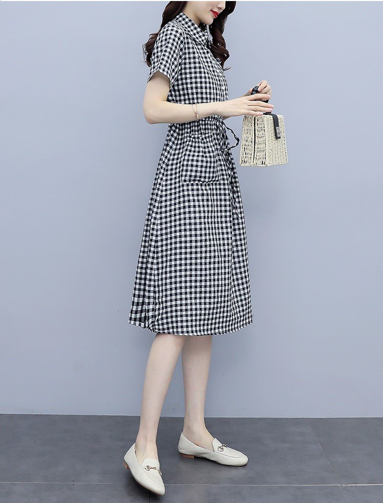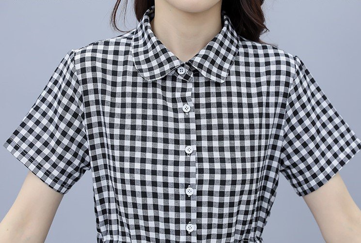 Váy sơ mi kẻ caro phối thêu nơ dễ thương, mang đến vẻ ngoài năng động nhưng vẫn nữ tính. Thiết kế: Dáng suông thoải mái, cổ sơ mi thanh lịch. Điểm nhấn: Họa