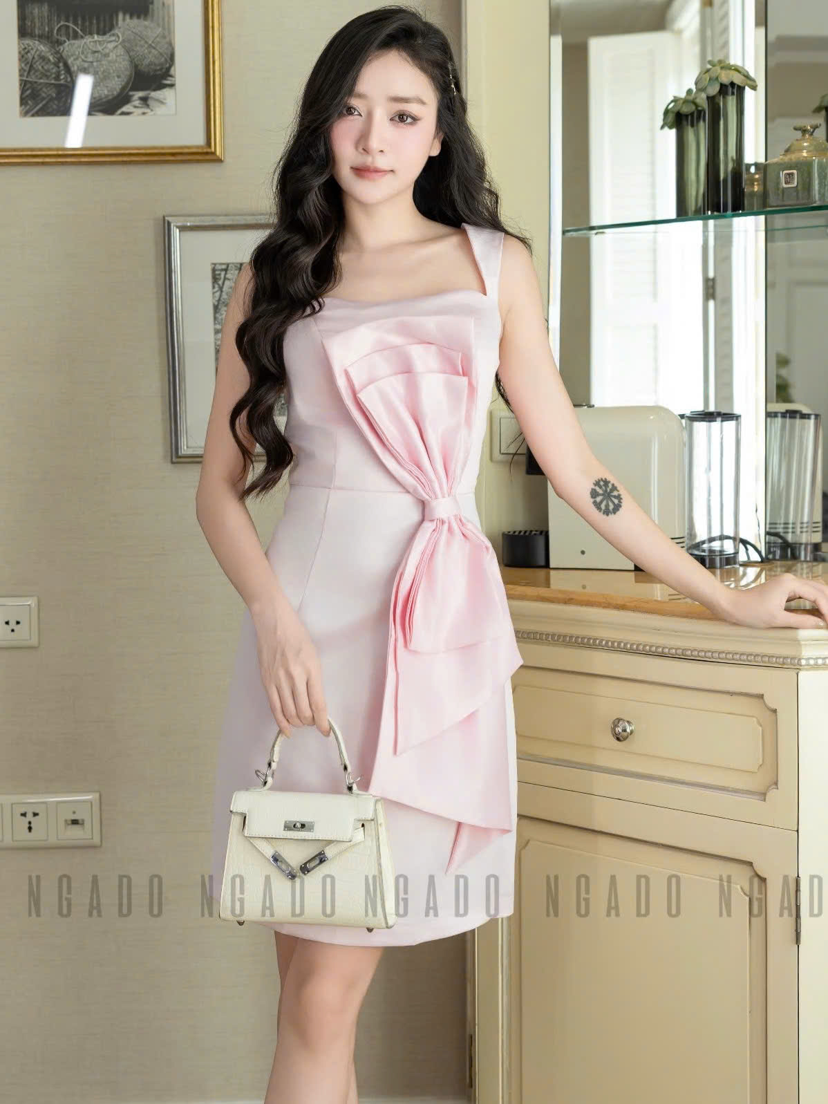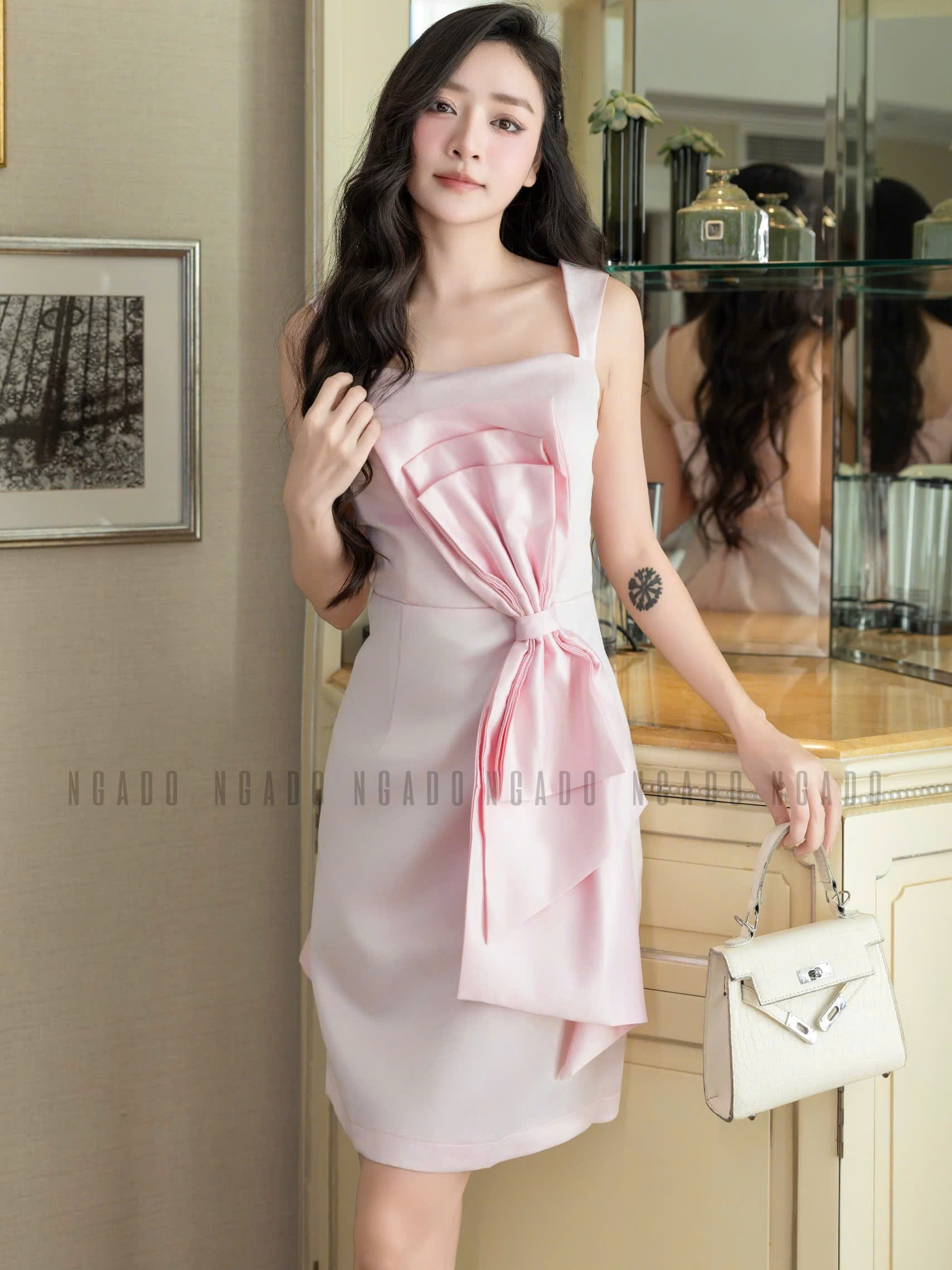 ✨Đầm hồng nơ eo NGADO , đầm hồng dự tiệc , đầm công sở