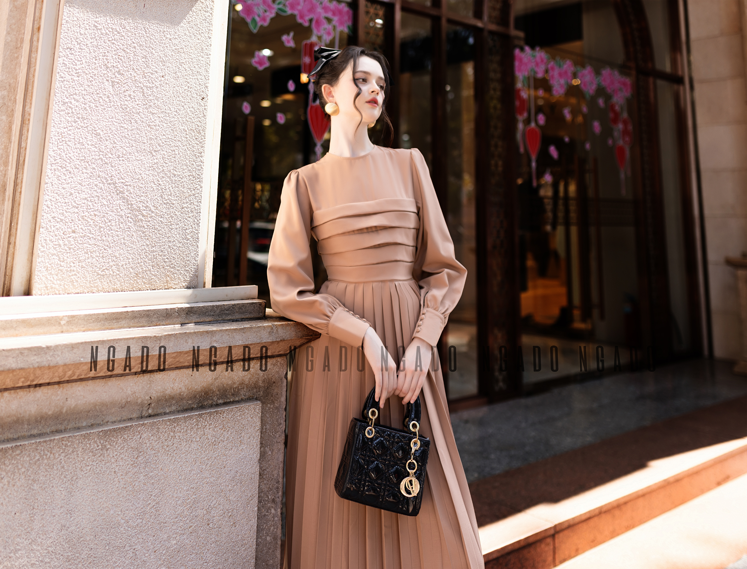 Chân váy xếp ly dáng dài màu nâu thanh lịch, trẻ trung - BT8X063