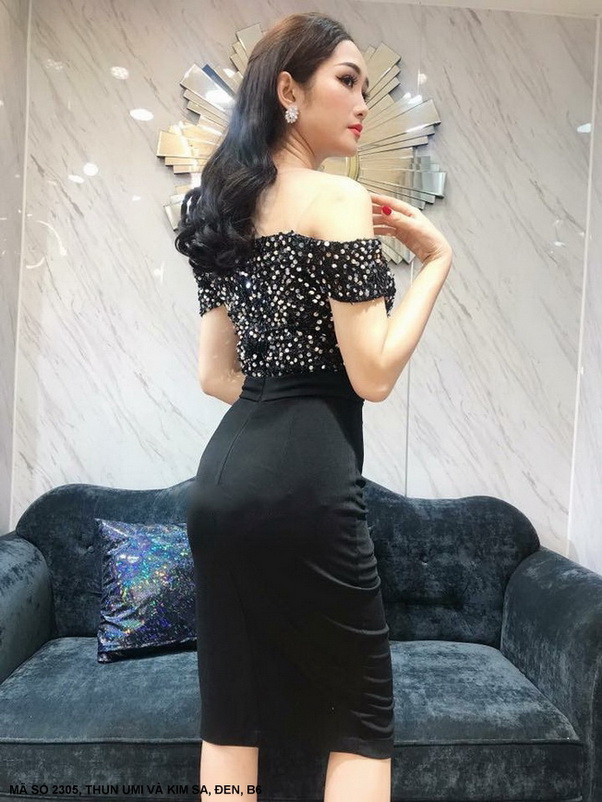 Đầm cúp vạt trễ vai đẹp xỉu ôm trọn dáng nàng yêu kiều, sản phẩm đính kết đá tỉ mỉ #chauhy#thoitrang