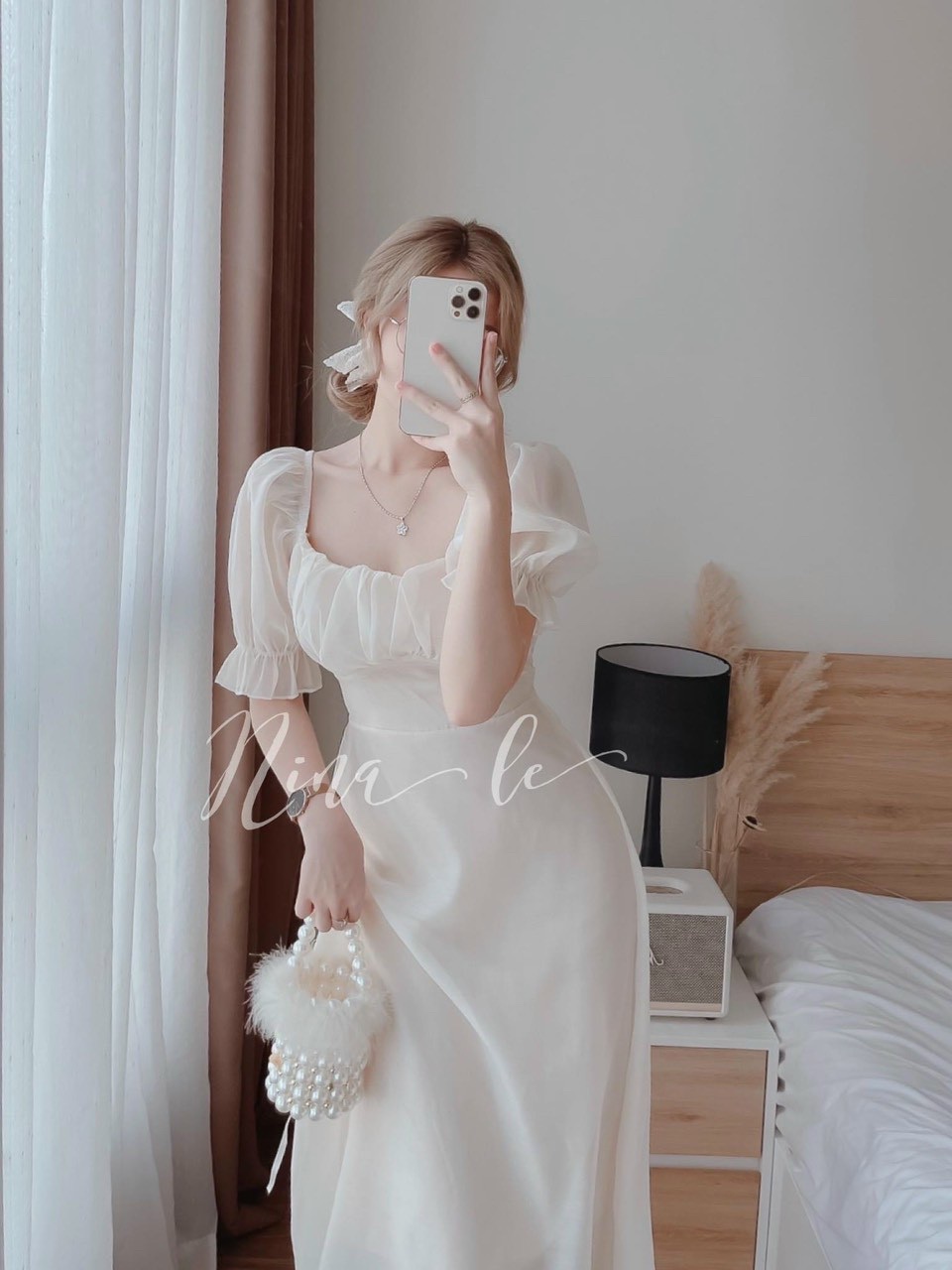 D4980] Váy thiết kế ren cúc bọc tay bồng pha chân tơ dáng dài Shop về 2 size S.M 2 màu trắng và kem Sản phẩm này là tài sản cá nhân được bán bởi