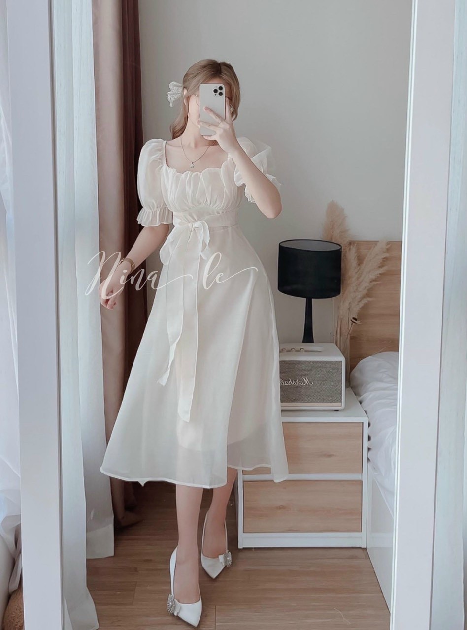 ✨Đầm tay phồng xếp ly ngực