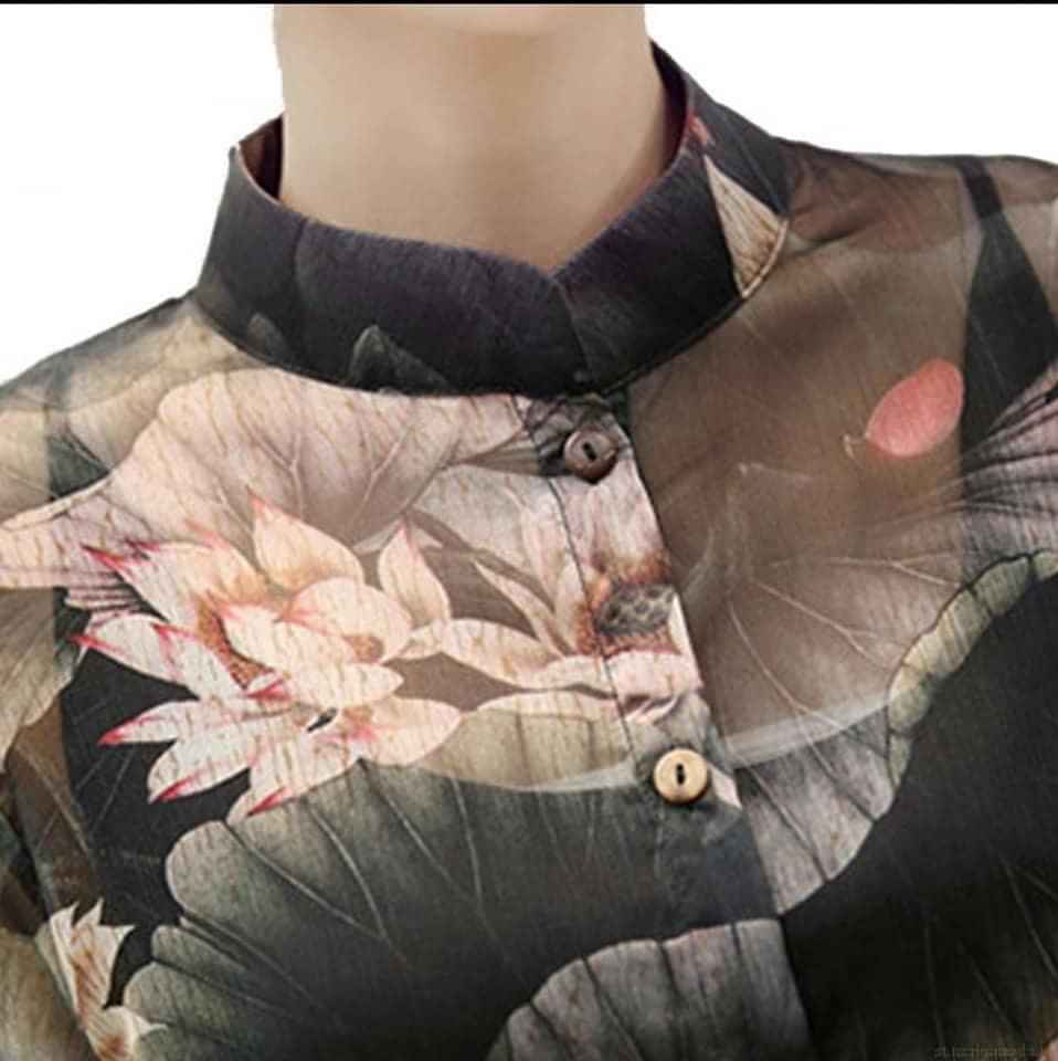 Chất liệu: Thun hàn mềm mịn in hoa 3D sắc nét, có độ dày vừa phải, co giãn tạo sự thoải mái nhưng vẫn giữ phom áo đứng đẹp Màu sắc: Nền xanh bích, hoa