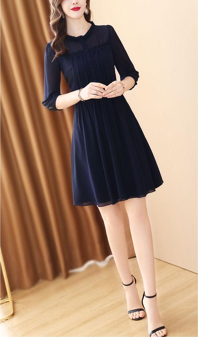 Đầm xòe ren lỗ tay ngắn cổ bẻ kết nút-14045 - LH zalo: 0912335038 #damtrungnien#vaydep #vaytrungnien