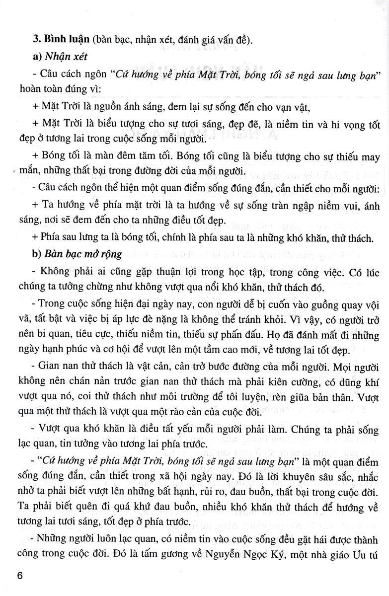 Nghị luận xã hội: Tác giả đưa ra các đề bài nghị luận về một tư tưởng, đạo lí. Tác giả trình bày rõ quan điểm và hệ thống các luận điểm; cấu trúc chặt chẽ; sử dụng các lí lẽ và dẫn chứng thuyết phục: chính xác, tin cậy, thích hợp, đầy đủ. Nhờ vậy, nội dung trình bày rõ ràng và dễ hiểu.