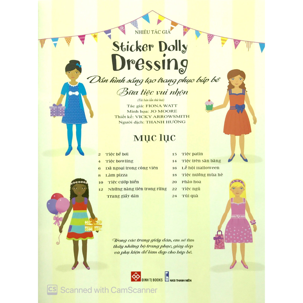 Em hãy dùng miếng dán trong sách và tô điểm cho búp bê bằng những bộ trang phục đẹp đẽ để phù hợp với nhiều bữa tiệc khác nhau như tiệc cướp biển, tiệc dã ngoại trong công viên, lễ hội Halloween và nhiều dịp khác nữa.