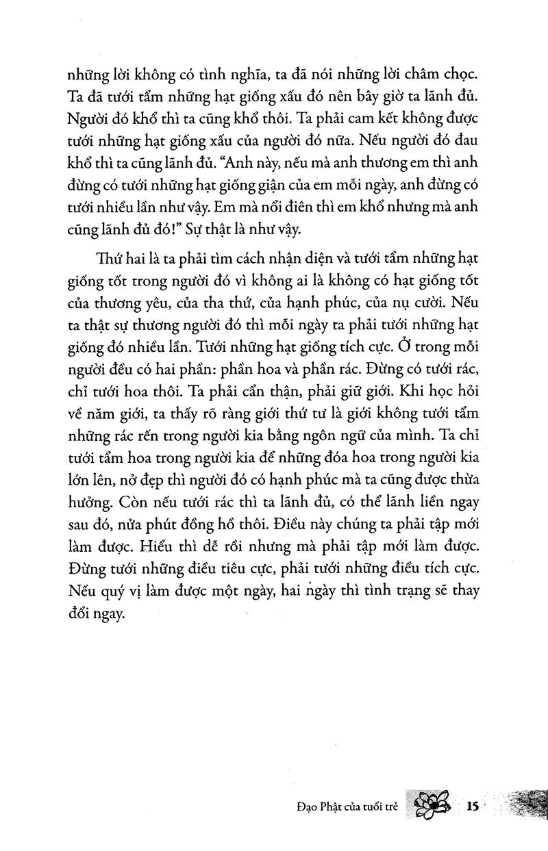 Đạo Phật Trong Tuổi Trẻ của tuổi trẻ là tổng hợp các bài giảng của Sư ông Thích Nhất Hạnh cho Gia đình Phật tử Việt Nam tại Hoa Kỳ trong các khóa tu năm 1997,