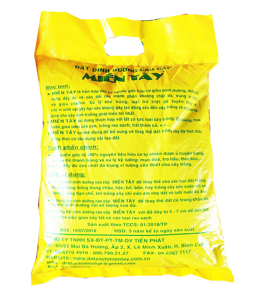 Đất sạch giàu dinh dưỡng Tiến Phát Miền Tây 5dm3 là hỗn hợp đất có nguồn gốc hữu cơ, giàu dinh dưỡng, được bổ sung đầy đủ và cân đối các thành phần khoáng chất, vi lượng và giàu vitamin.