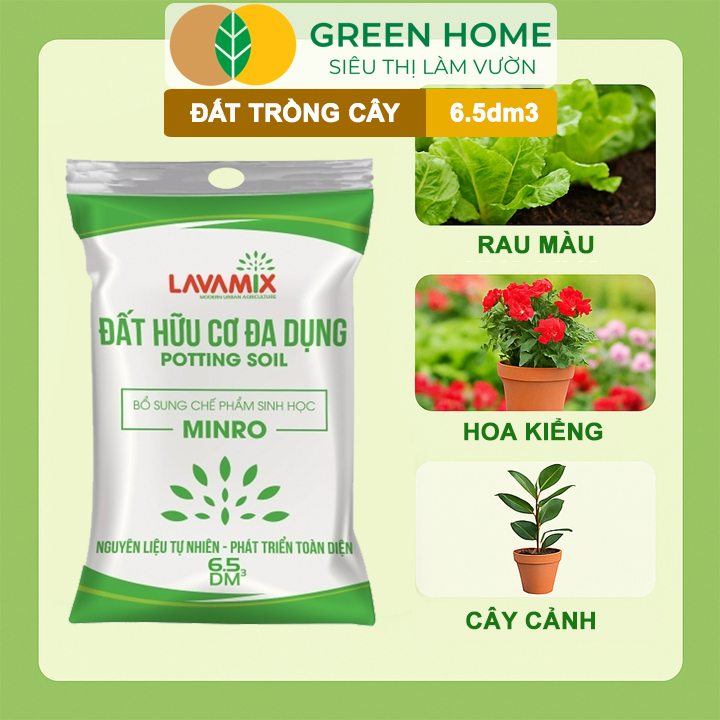 GIÁ SỈ SIÊU LỢI: Bao 6,5dm3 Giá chỉ còn 12k Số lượng: 200 bao Giá chỉ còn 14k Số lượng: 100 bao Đất trồng cây Lavamix, đất hữu cơ trồng rau, hoa, kiểng, tiện lợi, dễ sử dụng |Greenhome ĐẶC ĐIỂM NỔI BẬT: