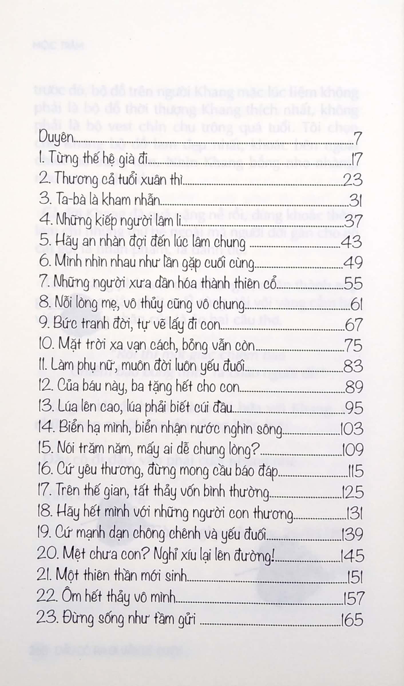 "Chỉ muốn rằng, quyển sách này sẽ chạm đến trái tim của những con người đã từng lạc bước ngoài kia và cả những người trẻ đang chập chững bước vào đời. Mong sao, khi gấp quyển sách lại, người ta sẽ yêu nhiều hơn cái cuộc đời bình sinh ngắn ngủi này. Họ sẽ thương nau hơn, chấp nhận và bao dung hơn những điều còn khiếm khuyết trong cuộc sống. Để cho dù có bất chợt ra đi, họ vẫn sẽ mỉm cười vì không còn gì băn khoăn và nuối tiếc.