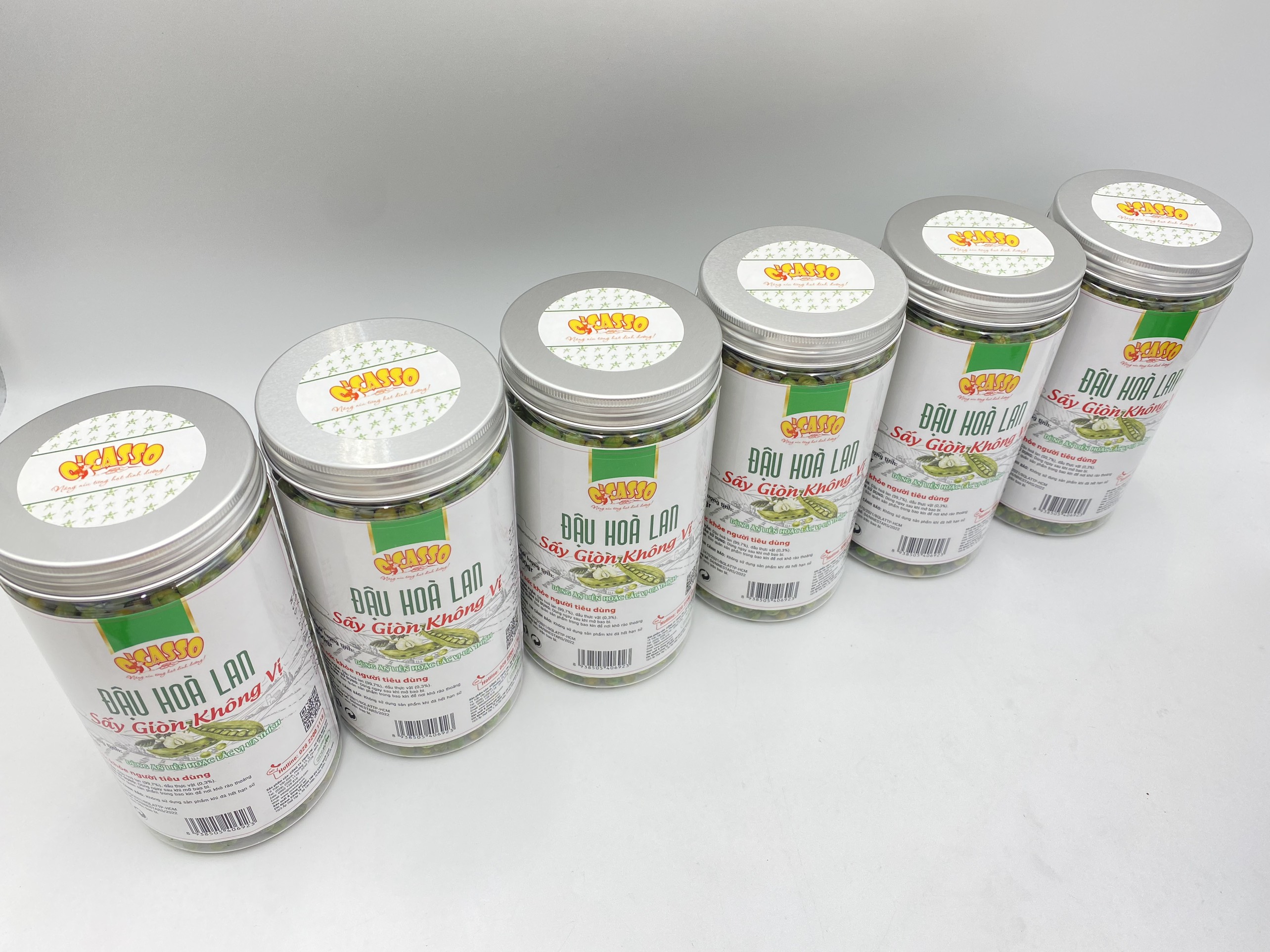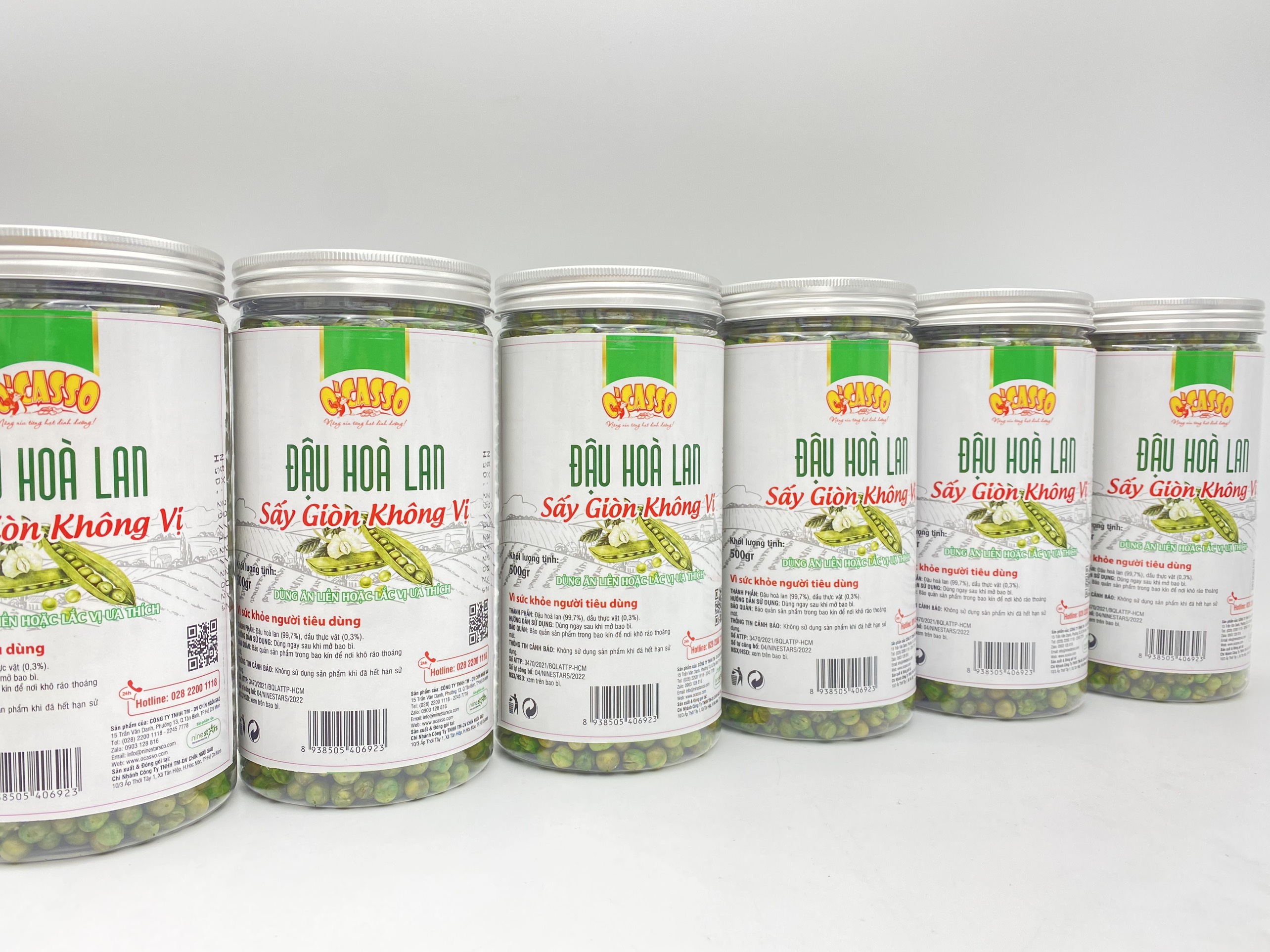 - Đậu hòa lan sấy giòn vị muối O’Casso. Sản Phẩm chính hiệu của Nine Stars đảm bảo chất lượng, thơm ngon, giòn tan từng hạt. Mùi thơm của hạt đậu Hòa Lan, độ béo