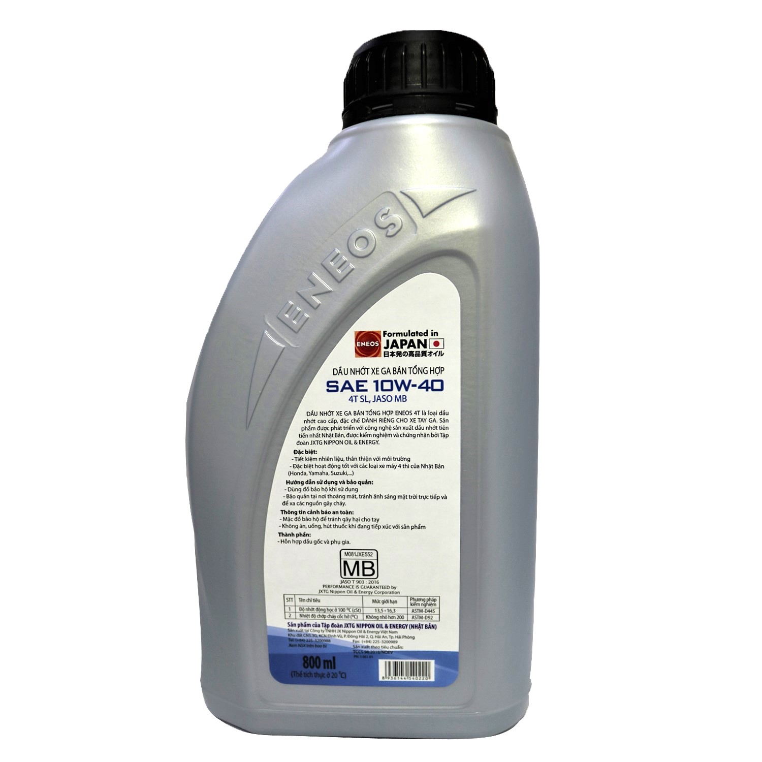 - Tên sản phẩm (VN): Dầu nhớt bán tổng hợp động cơ xe tay ga Eneos 10W40 EN-MB-10W40