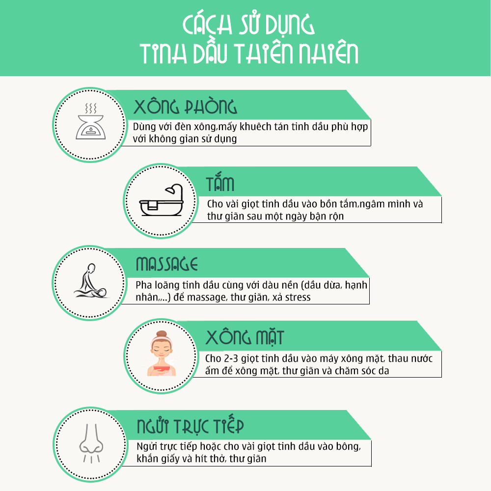 Nguyên chất, 100% thiên nhiên, Sản xuất tại Canada Kháng khuẩn, khử mùi, giảm ho, điều hòa cơ thể và tinh thần, thư giãn, phục hồi da, hỗ trợ  trị mụn, ngừa sẹo