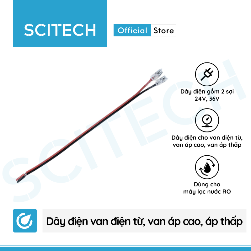 Dây điện cho van điện từ, van áp cao, van áp thấp máy lọc nước RO. Dây gồm 2 sợi đen và đỏ, với 2 đầu được bấm cos giúp bạn dễ dàng sử dụng, thay thế.