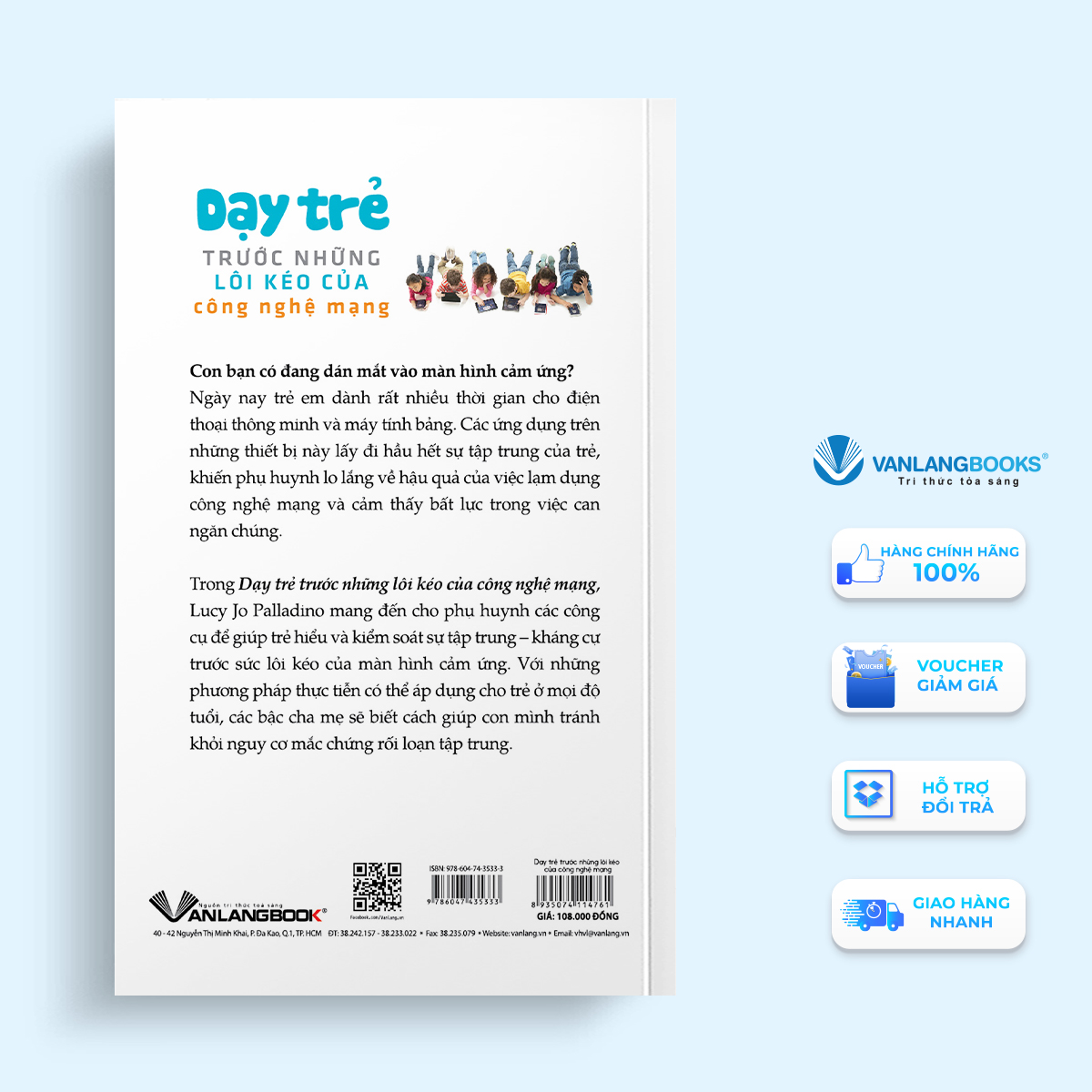 Trong Dạy trẻ trước những lôi kéo của công nghệ mạng, Lucy Jo Palladino mang đến cho phụ huynh các công cụ để giúp trẻ hiểu và kiểm soát sự tập trung – kháng cự trước sức lôi kéo của màn hình cảm ứng. Với những phương pháp thực tiễn có thể áp dụng cho mọi độ tuổi, các bậc cha mẹ sẽ biết cách giúp con mình tránh khỏi nguy cơ mắc chứng rối loạn tập trung.