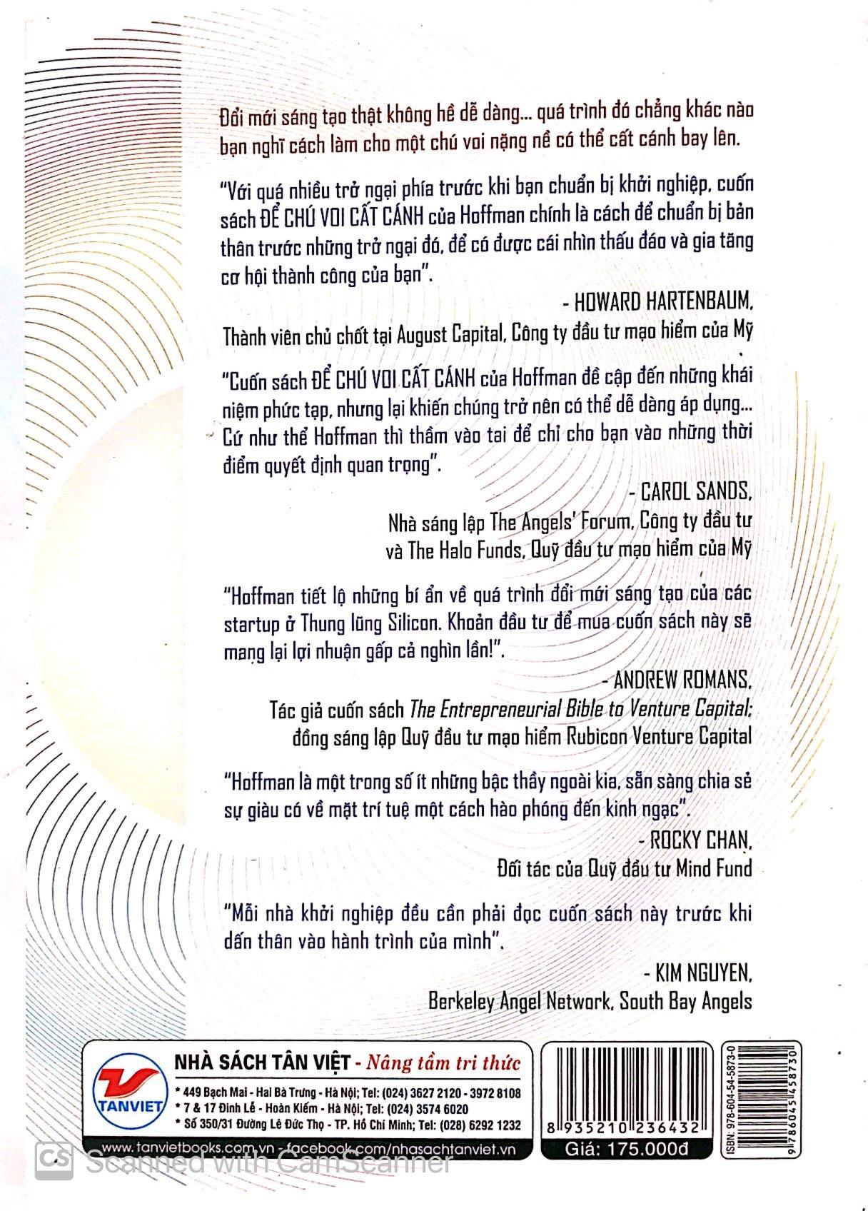 Cuốn sách ĐỂ CHÚ VOI CẤT CÁNH của STEVEN S. HOFFMAN - Nhà sáng lập và điều hành Founders Space - vườn ươm khởi nghiệp hàng đầu thế giới sẽ giúp bạn thực hiện những phương pháp và quy trình đổi mới sáng tạo giống như những gì mà các startup ở Thung lũng Silicon đã và đang áp dụng! Bạn sẽ học được:
