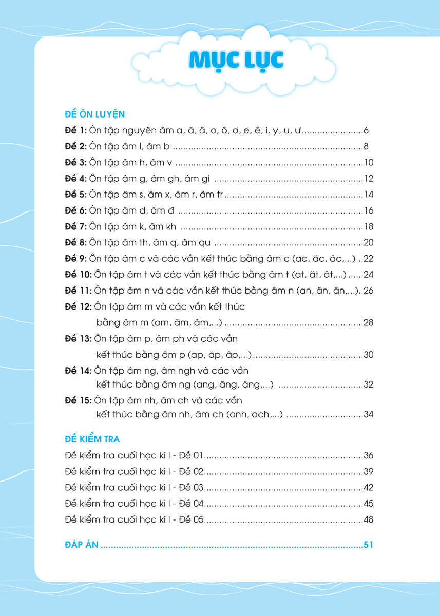 Đề Ôn Luyện Và Tự Kiểm Tra Tiếng Việt Lớp 1 - Tập 1 (Biên Soạn Theo Chương Trình GDPT Mới) là một "trợ thủ" đắc lực giúp các em học sinh có thể tự ôn luyện sau mỗi giai đoạn học tập: ôn tập ngắn sau 2-3 tuần học, ôn tập giữa học kỳ và ôn tập cuối học kỳ - cuối năm học.