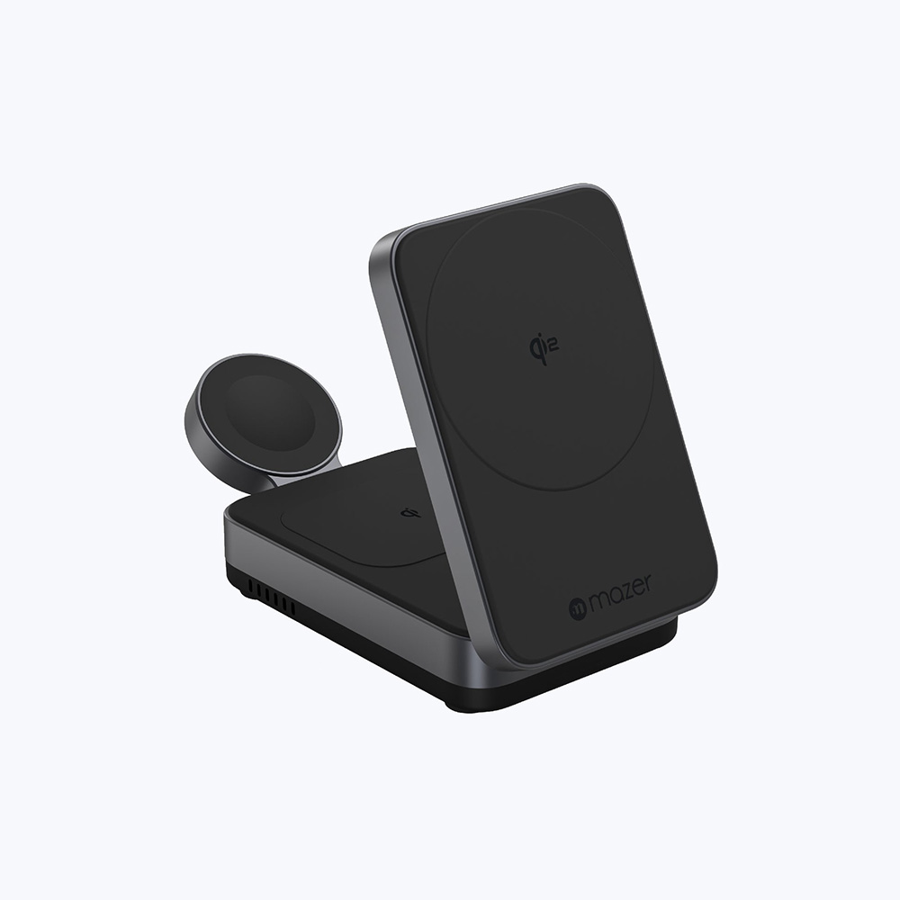 Đế Sạc Không Dây 3 Trong 1 Mazer MagFold Trio QI2 15W Sạc Được Cho Điện Thoại, Tai Nghe, Đồng Hồ Gấp Gọn Tiện Mang Theo