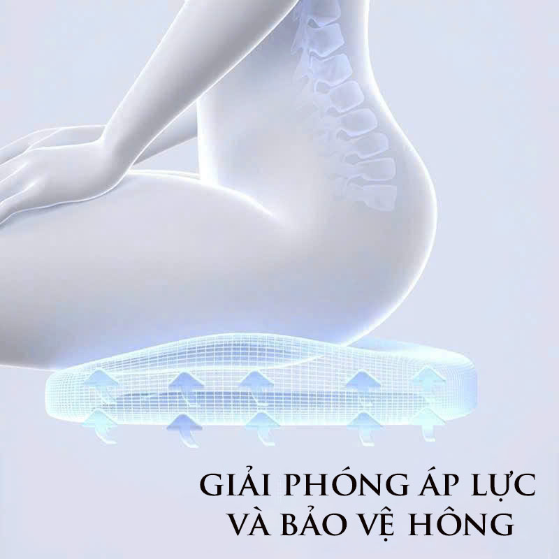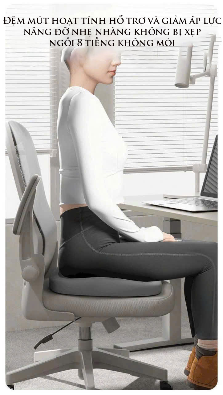 • Thiết kế ergonomic thông minh – giúp giảm áp lực lên cột sống, hỗ trợ chống đau lưng, đau mông.
